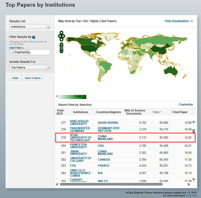 据科睿唯安2025年11月更新的ESI统计数据显示,beat365官网工程学学科首次进入ESI全球前1‰,标志着beat365正版唯一官网必一工程学学科已迈入国际领先学科行列,实现了历史性跨越。本期ESI统计数据覆盖时间范围内,beat365官网工程学学科位于ESI全球0.983‰,发文量为5115篇,总被引频次65566次。截至目前,beat365官网已有工程学、材料科学、环境/生态学、计算机科学、化学、农业科学、地球科学等7个学科位列ESI全球学科排名前1%。
