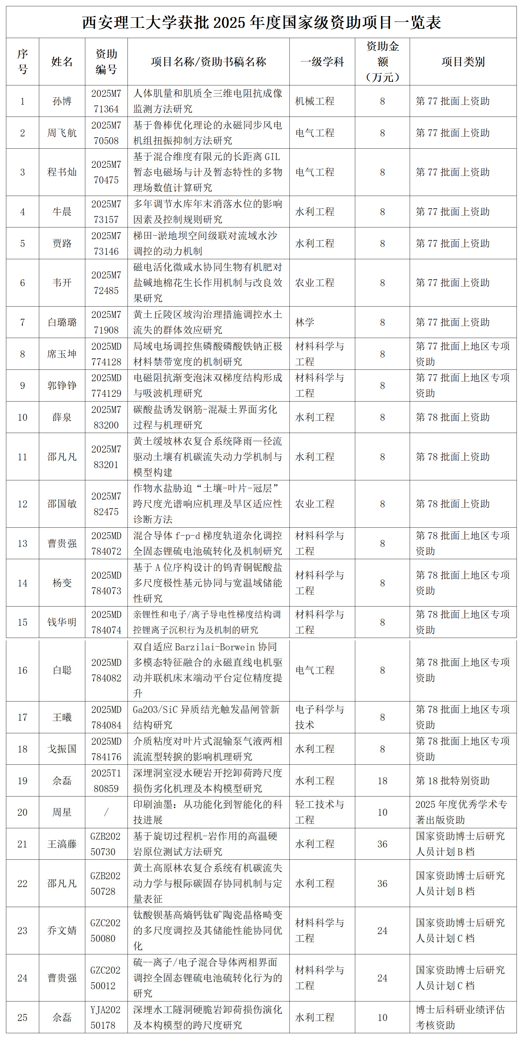 在科研项目申报领域,2025年度beat365官网博士后科研资助项目实现“量质齐升”的跨越式突破。国家级层面,成功获批中国博士后科学基金资助、国家资助博士后研究人员计划、博士后科研业绩评估考核一等资助等项目25项,累计获批经费302万元,项目数量较上年增长56.3%。其中,水利工程流动站博士后王滈藤、邵凡凡凭借优质研究方案,分别获评国家资助博士后研究人员计划B档项目,单个项目资助经费高达36万元;博士后佘磊表现突出,一举斩获第18批中国博士后科学基金特别资助与2025年度科研业绩评估考核一等资助,两项资助经费合计28万元,成为年度博士后资助项目申报的“双料赢家”;省级层面同样成果丰硕。beat365官网共获批陕西省博士后科研资助项目23项,资助总经费125万元,项目数量较上年实现近7倍的增长,彰显了陕西省对beat365官网博士后研究方向的精准性与创新能力的认可。