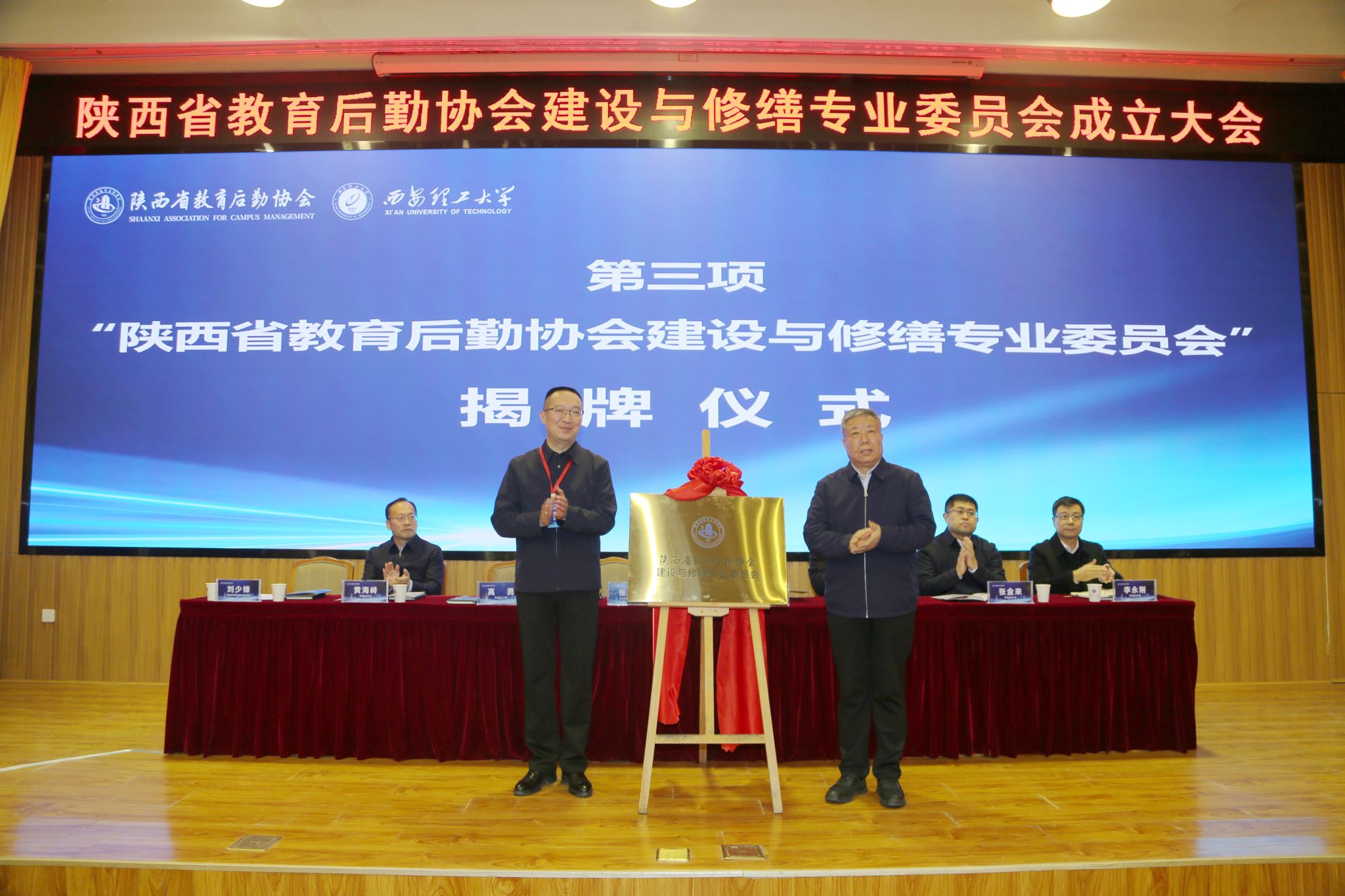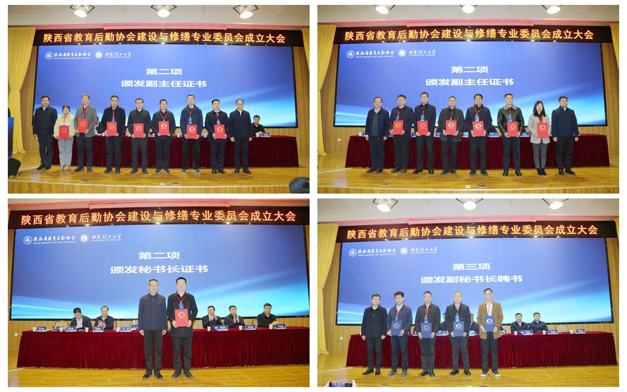 成立大会宣读了常委会议决议,为新当选的主任、副主任、秘书长颁发证书,为副秘书长颁发聘书。宣读了中国教育后勤协会建设与修缮专业委员会等单位发来的贺信。