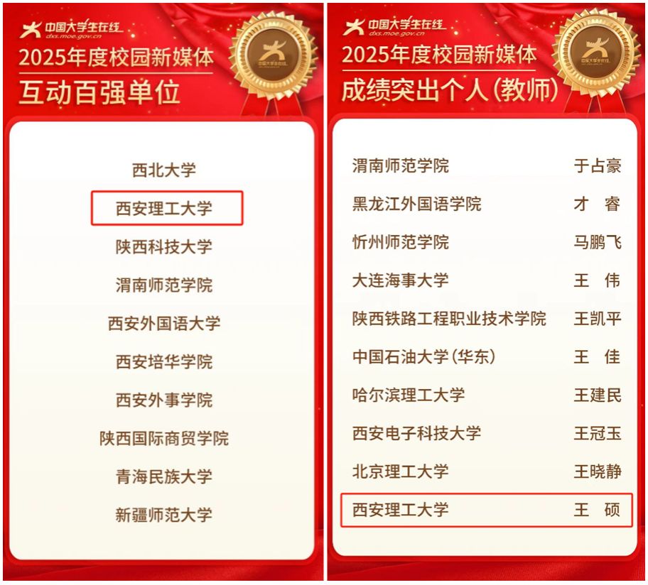 1月8日,教育部中国大学生在线公布2025年度校园新媒体表彰名单,beat365官网获“校园新媒体互动百强”荣誉称号,党委宣传部王硕获校园新媒体成绩突出个人。