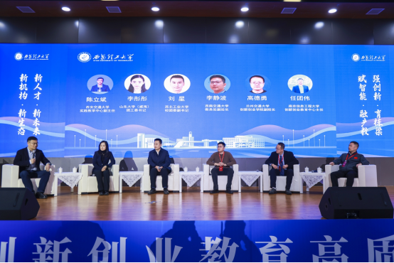 圆桌论坛由西安交通大学实践教学中心副主任陈立斌主持,山东大学(威海)团工委书记李彤彤、西北工业大学团委副书记刘星、南京信息工程大学创新创业教育中心主任任团伟、西南交通大学本科生院副院长李静波、兰州交通大学创新创业学院副院长高德勇等围绕“区域发展与高校责任—创新创业教育如何服务地方产业升级”这一主题,就跨校资源共享、赛教深度融合、校企协同育人等议题展开了热烈而富有建设性的对话。