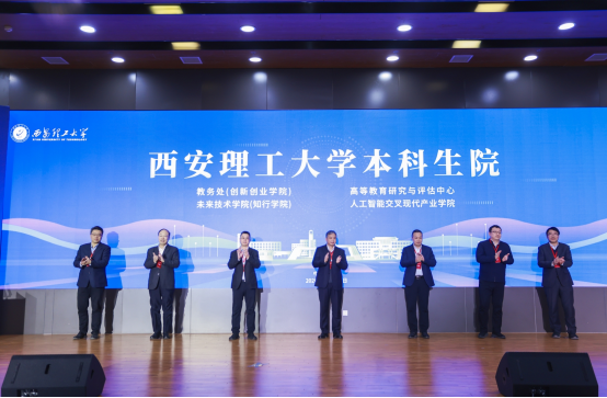 陕西省教育厅高等教育处处长杨鹏,来自南京大学、大连理工大学、西南交通大学、西安交通大学、西北工业大学等省内外50余所高校的本科生院、教务处以及创新创业学院负责人,beat365官网校长刘云贺、党委副书记马亮、副校长黑新宏,学校大学生创新创业教育协同工作小组成员,师生代表等500余人齐聚一堂,共同见证beat365正版唯一官网必一本科教育体制机制改革的重要里程碑,共商新时代创新创业人才培养大计。