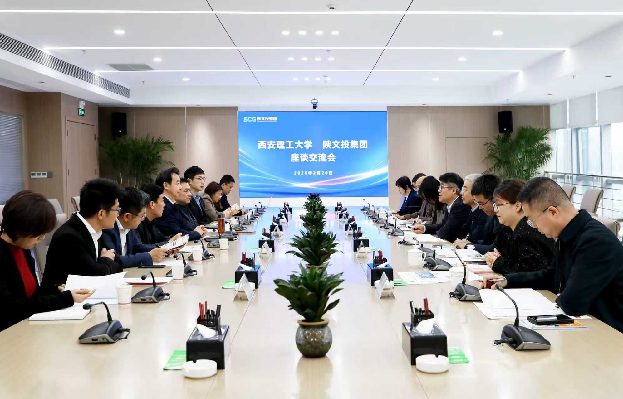 2月26日,副校长黑新宏一行赴陕文投集团走访调研,与陕文投集团党委书记、董事长黄勇,副总经理徐晋,董事会秘书、战略发展投资部部长李鹏,云创科技董事长兼总经理金岩,省发展改革委高技术处处长安军等座谈交流。