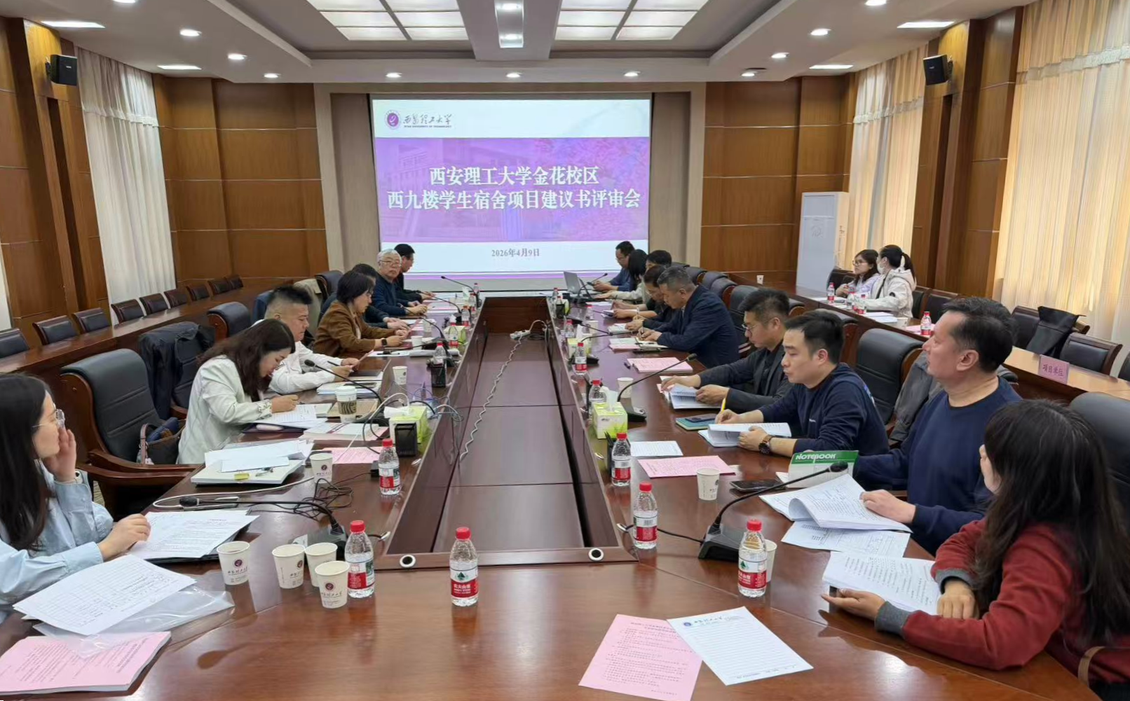 4月9日,省政府投资评审中心在beat365官网金花校区101会议室组织召开未来技术中心、西九楼学生宿舍项目建议书专家评审会。会议由省政府投资评审中心副主任王杰主持。beat365官网副校长董小兵出席会议,省政府投资评审中心评审一处处长寇静、副处长董理及省政府投资评审中心5名专家组成员参加评审会。