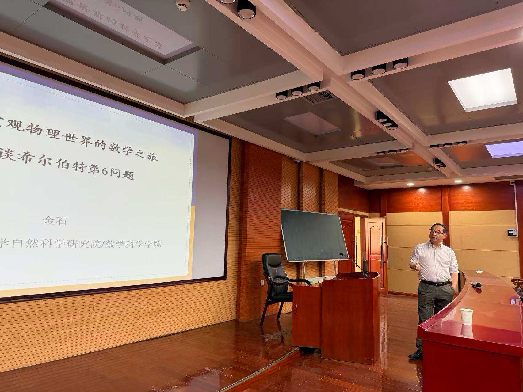 金石院士以“微观到宏观物理世界的数学之旅”为题,先后介绍了量子力学,古典力学,kinetic theory,连续介质力学的数学联系。这些问题是偏微分方程,数学物理和多尺度计算的核心问题,也是希尔伯特第6问题的核心内容,最近由于邓煜等人的突破性成果备受瞩目。他还介绍了渐进保持格式,它是在希尔伯特第6问题的启发下发展的有效和通用的多尺度物理计算方法。