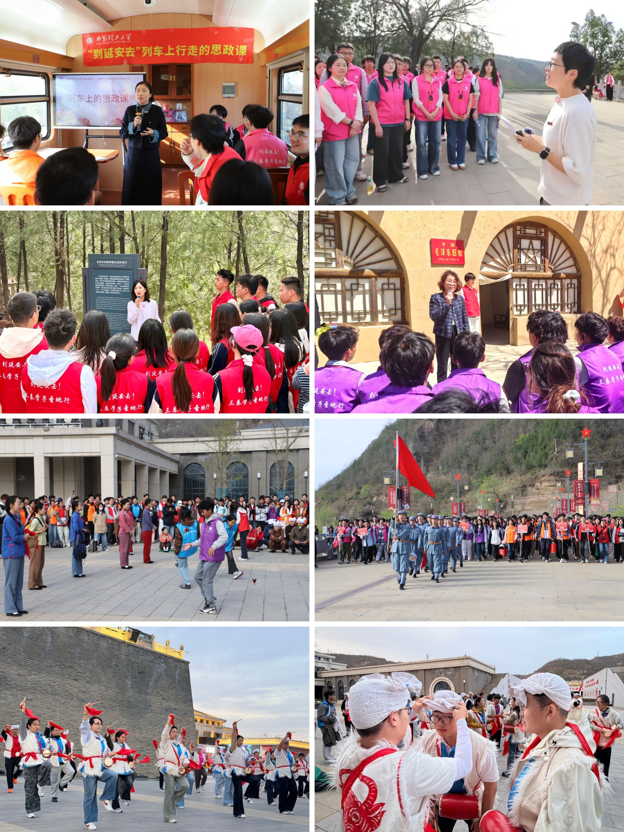 本次延安行研学活动立足传承、勇于创新,以三大特色亮点让红色教育更具吸引力、感染力与实效性。一是思政引领铸魂,打造“行走的思政课”,学校专门选派马克思主义学院骨干教师全程随队,把思政课堂从校园搬到革命圣地,在纪念馆、旧址、广场等现场开展微宣讲、微党课,结合历史史实解读延安精神内涵,实现理论讲解与实地感悟深度融合,让思政教育有温度、有深度、有力度。二是形式创新赋能,提升研学参与感,活动新增情景演绎、非遗体验、沉浸式剧目等互动环节,打破传统“参观+听讲”模式,让学生从“旁观者”变为“参与者”,在亲身实践中触摸历史、感悟精神,让思政课堂鲜活生动、入脑入心。三是团结聚力同心,铸牢中华民族共同体意识,活动专门组织各民族学生共同参与,各族青年并肩同行、共学党史、同悟精神,在交流互动中增进了解、凝聚共识,坚定“像石榴籽一样紧紧抱在一起”的信念,让民族团结之花在红色圣地绚丽绽放。