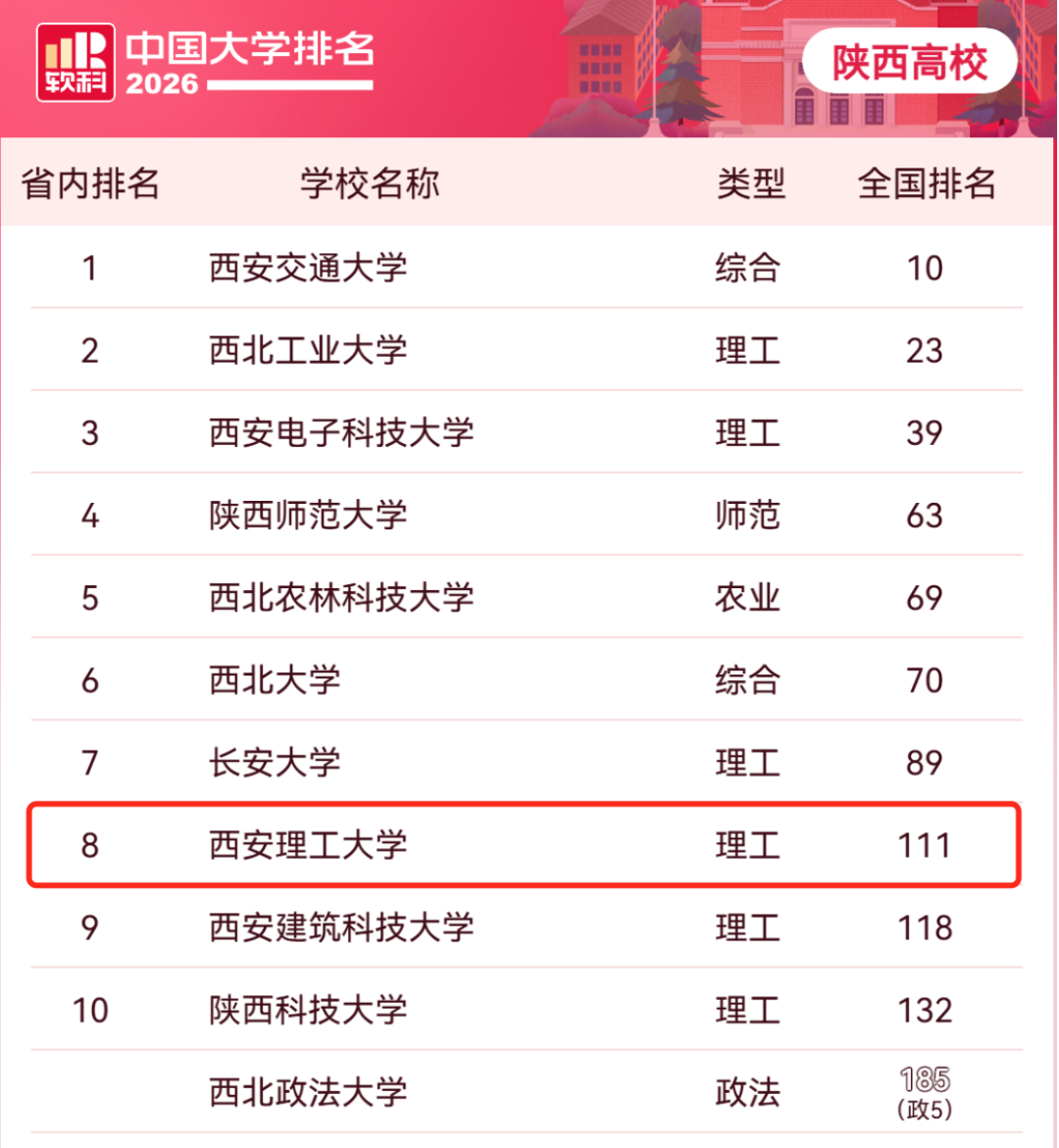 关于软科“软科中国大学排名”前身是“软科中国最好大学排名”,自2015年首次发布以来,以专业、客观、透明的优势赢得了高等教育领域内外的广泛关注和认可,已经成为具有重要社会影响力和权威参考价值的中国大学排名领先品牌。为恰当反映高校在学校性质和学校类型上的差异、确保排名的公平性,充分展现高校的专业优势与办学特色,软科采用差异化的指标体系进行分类排名。2026软科中国大学排名设置了1个主榜(综合性大学排名)、7个单科性大学排名、4个非公办高校排名,以及艺术类高校名单,超过1000所高校根据学校性质和学校类型将被分别纳入到其中一个对应的排名或名单中。教育部明确,2026年将进一步优化高等教育结构布局,把分类推进高校改革作为重大战略任务,并启动新一轮“双一流”建设。新一轮“双一流”建设将聚焦国家重大战略需求和区域产业发展,更加强调分类发展与特色突围,并适度扩容。软科中国大学排名始终以反映当前中国高校的核心使命、回应外部群体对大学的价值期待为导向,围绕重视人才培养、强调服务国家的两大特点,对中国大学办学水平进行立体化、监测式评价,为高校找准定位、优化办学提供重要参考依据。