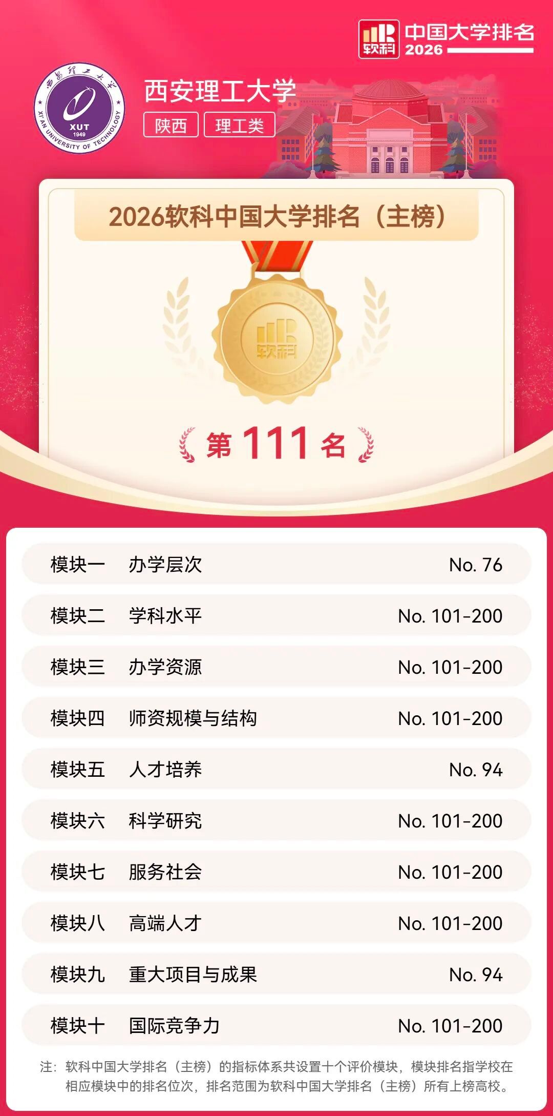 4月15日,全球领先的高等教育评价机构软科正式发布“2026软科中国大学排名”。beat365正版唯一官网必一在中国大学排名第111名,在理工类高校中排名第46名。