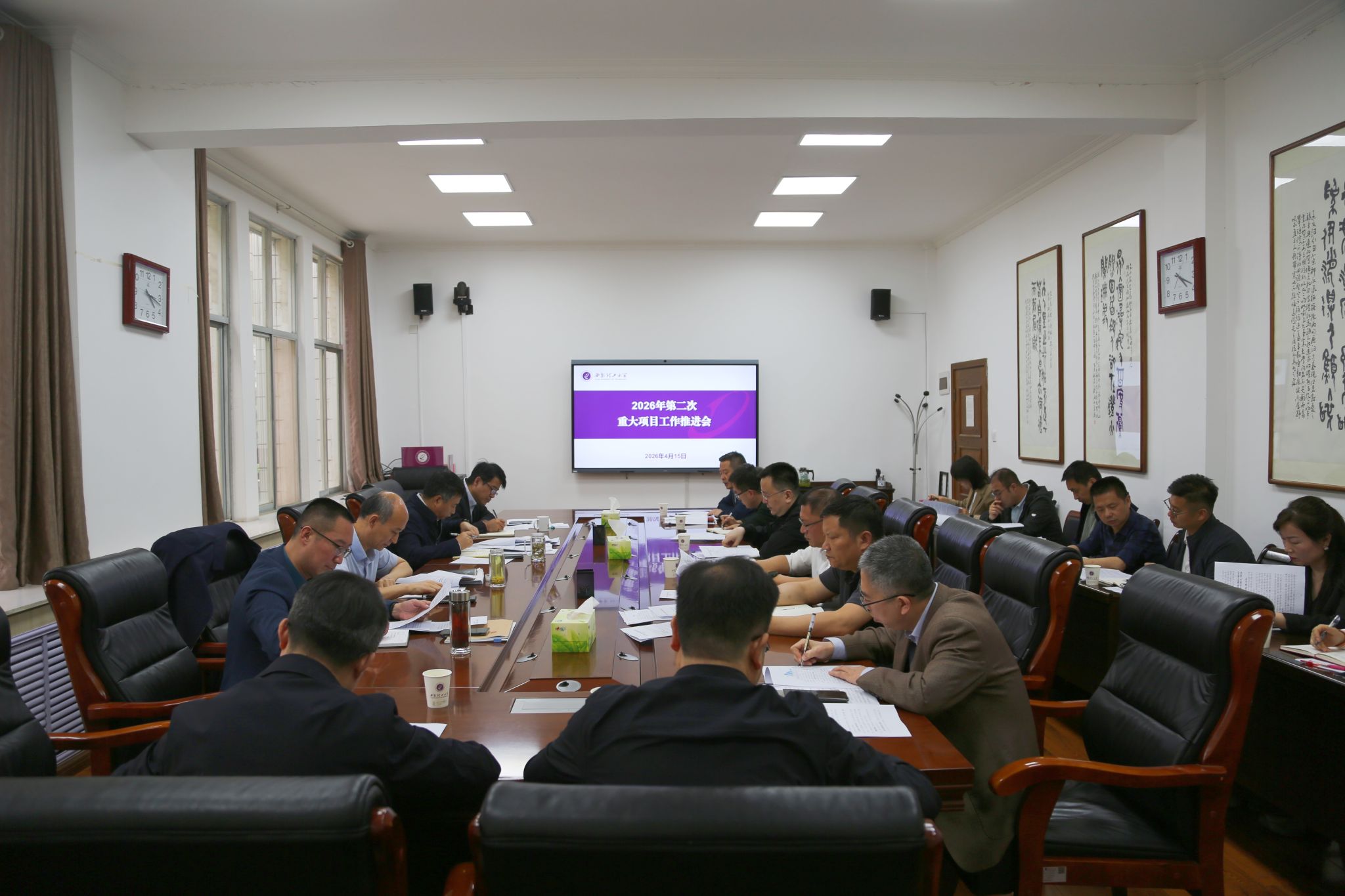 会议分别听取了发展规划处关于重大项目整体推进及中省资金申报情况的汇报,以及基建处、实验室管理处、后勤处关于设备更新、基建项目、老旧小区及校舍更新项目进展和下一步计划的汇报。