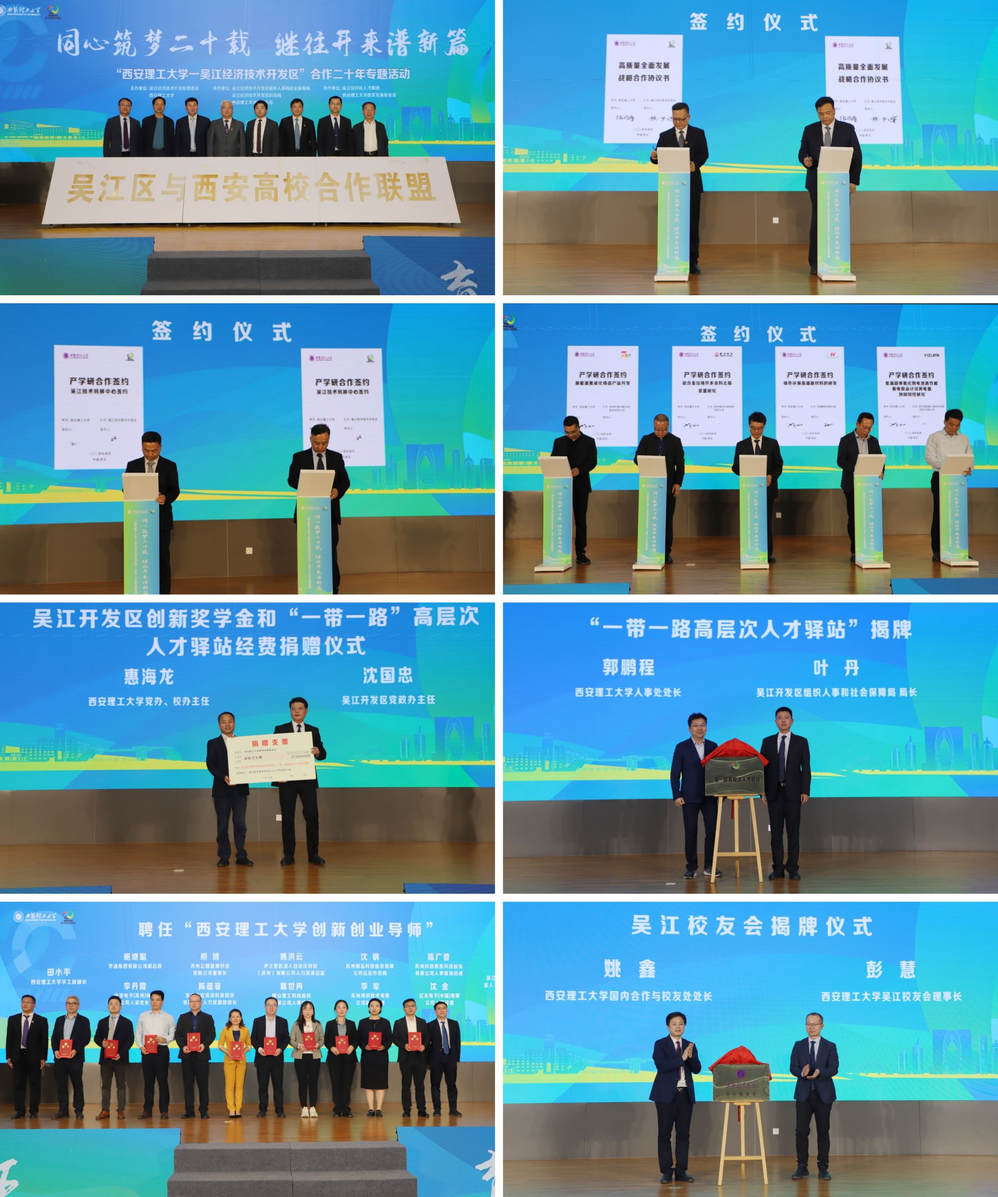 会上,双方签订了校地战略合作协议,举行了beat365正版唯一官网必一吴江技术转移中心签约仪式、校企产学研合作项目集中签约仪式、吴江开发区创新奖学金和“一带一路”高层次人才驿站经费捐赠仪式,为吴江经济技术开发区“一带一路”高层次人才驿站揭牌,对beat365正版唯一官网必一创新创业导师进行聘任,成立了beat365正版唯一官网必一吴江校友会、吴江区与西安高校合作联盟。