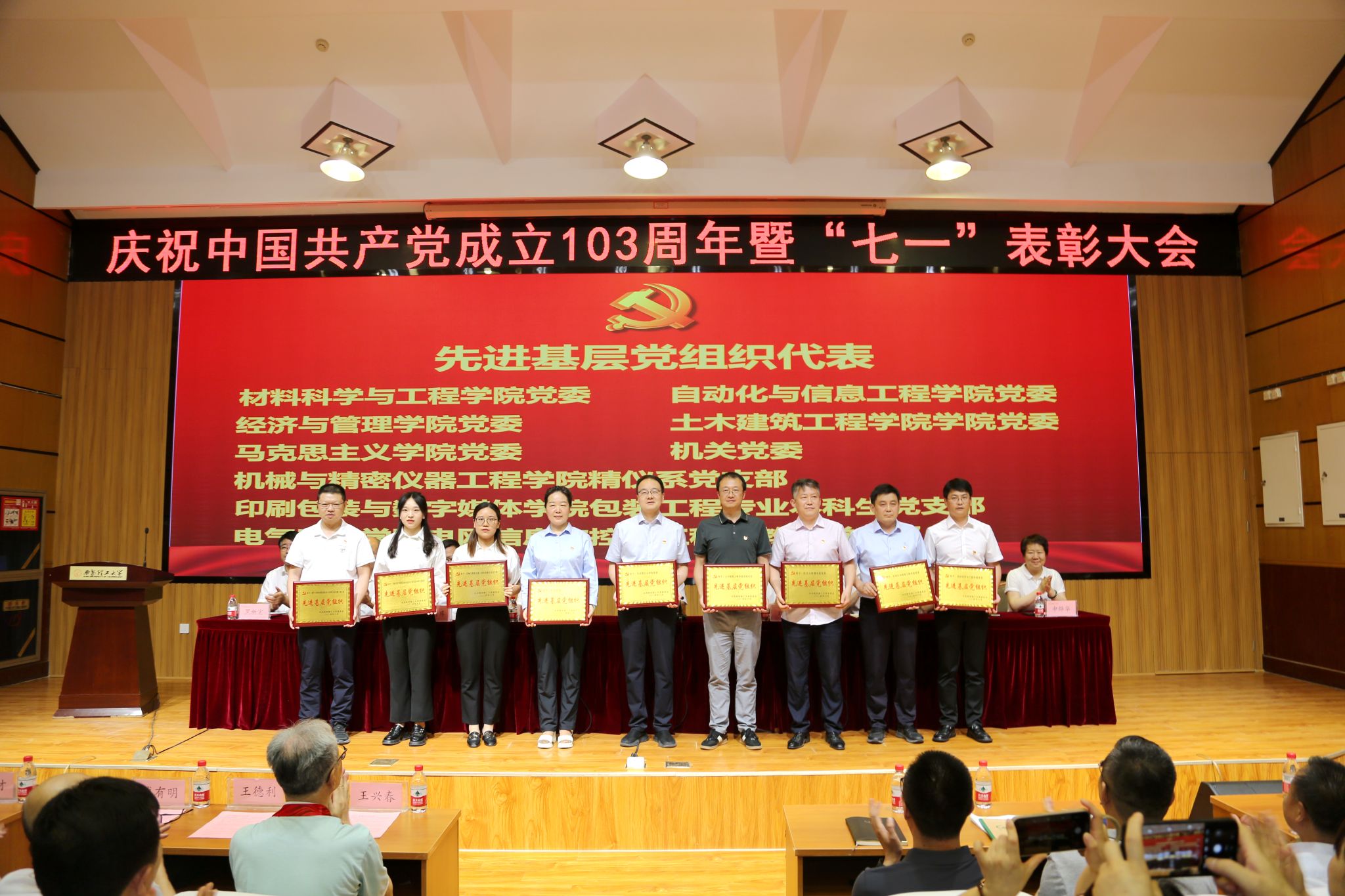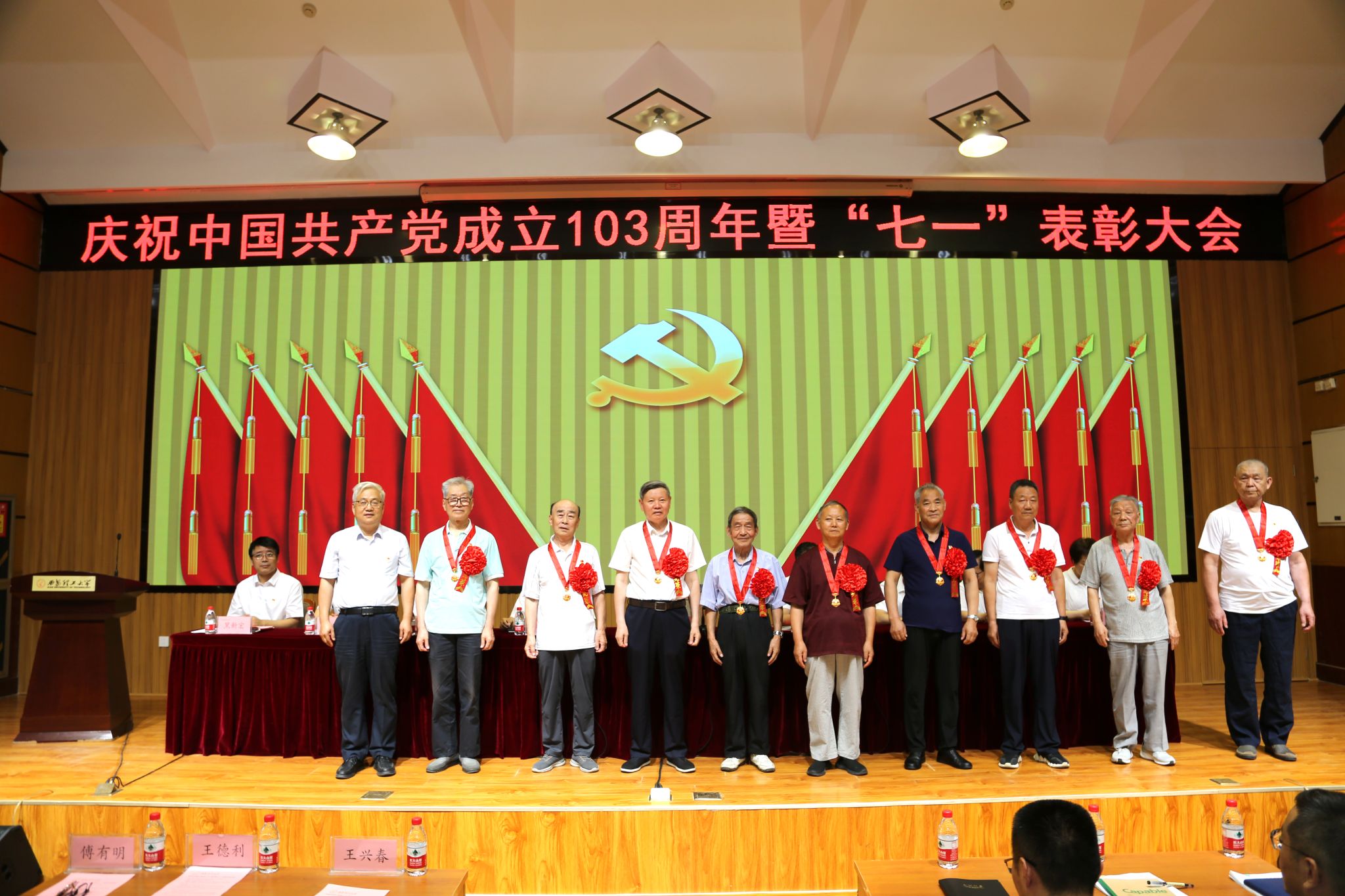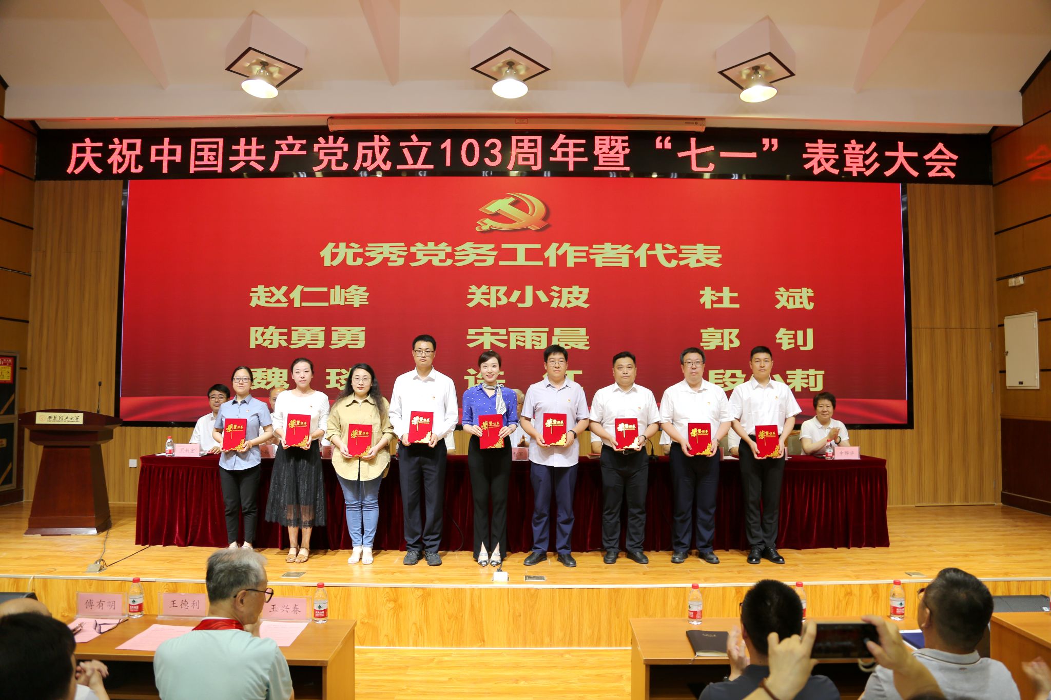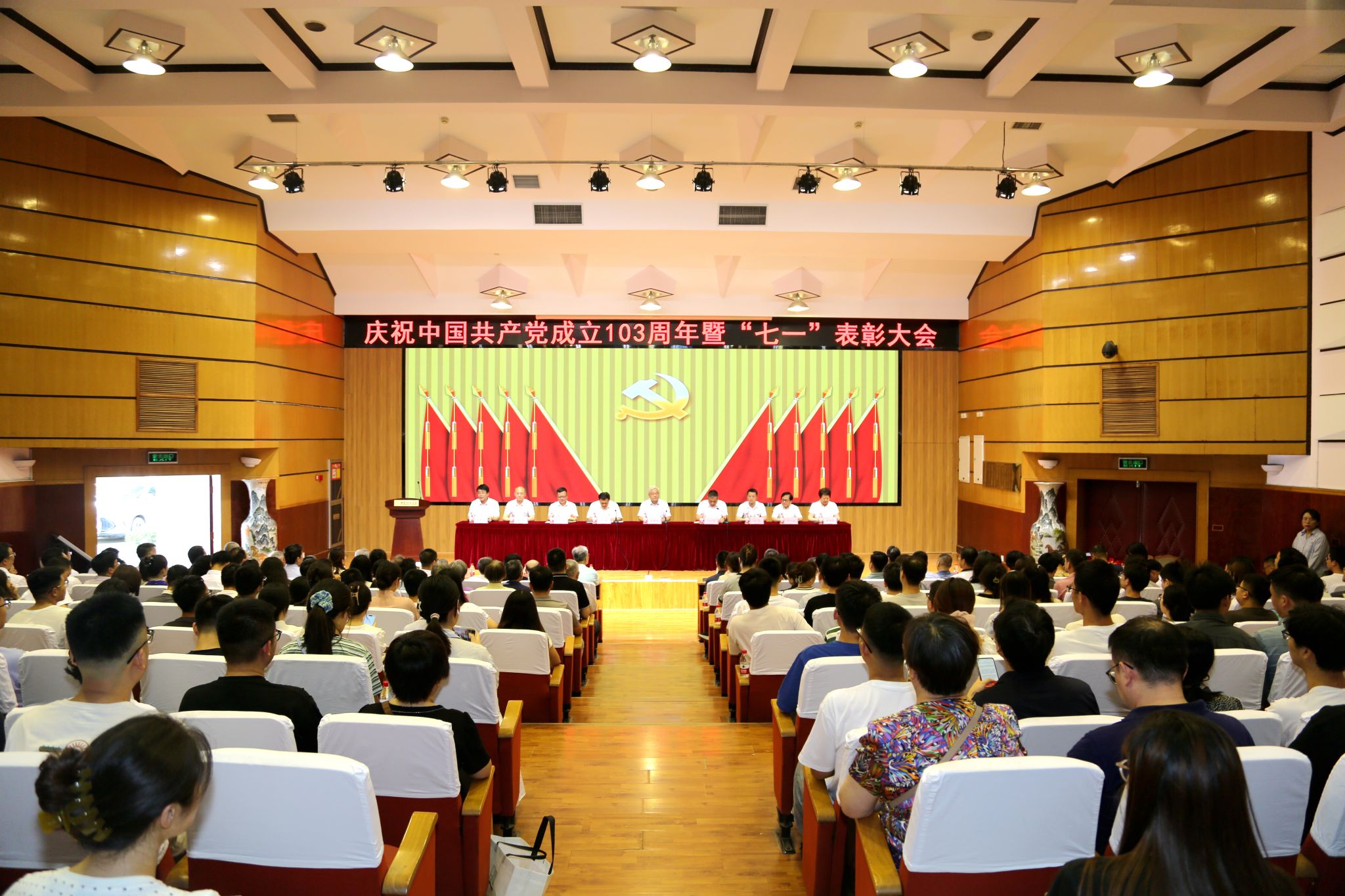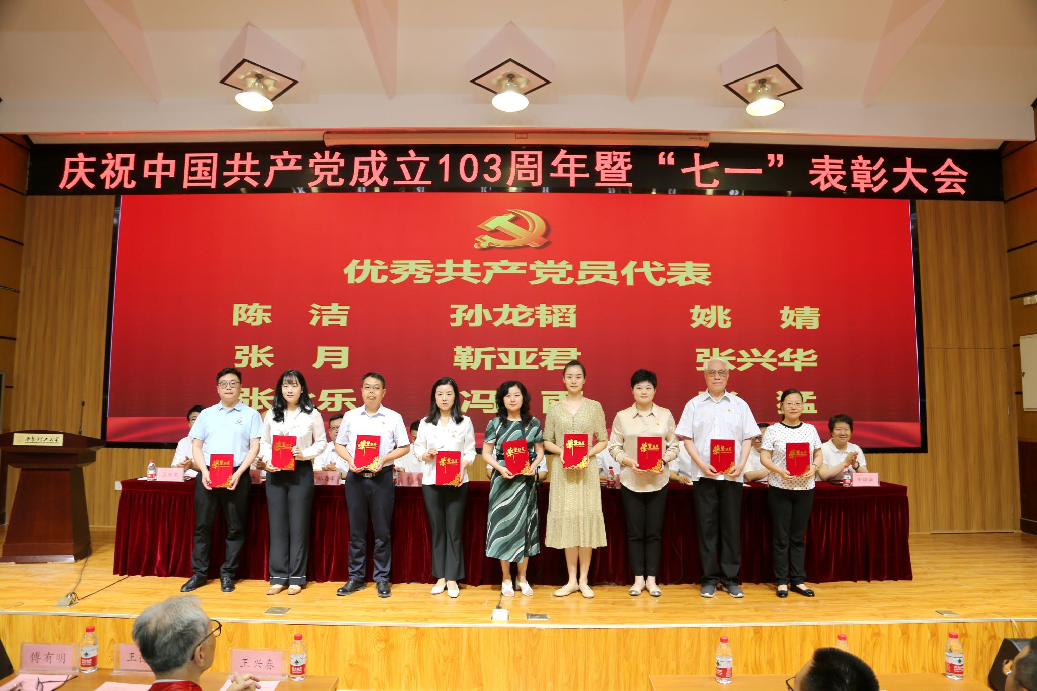 6月24日,beat365官网在金花校区图书馆报告厅召开庆祝中国共产党成立103周年暨“七一”表彰大会。校党委书记李智军出席会议并讲话,校党委副书记、校长刘云贺主持会议,校党委副书记、纪委书记、驻校纪检监察组组长李鹏,校党委副书记马亮、张存库,副校长华灯鑫、董小兵、申烨华、黑新宏出席会议。