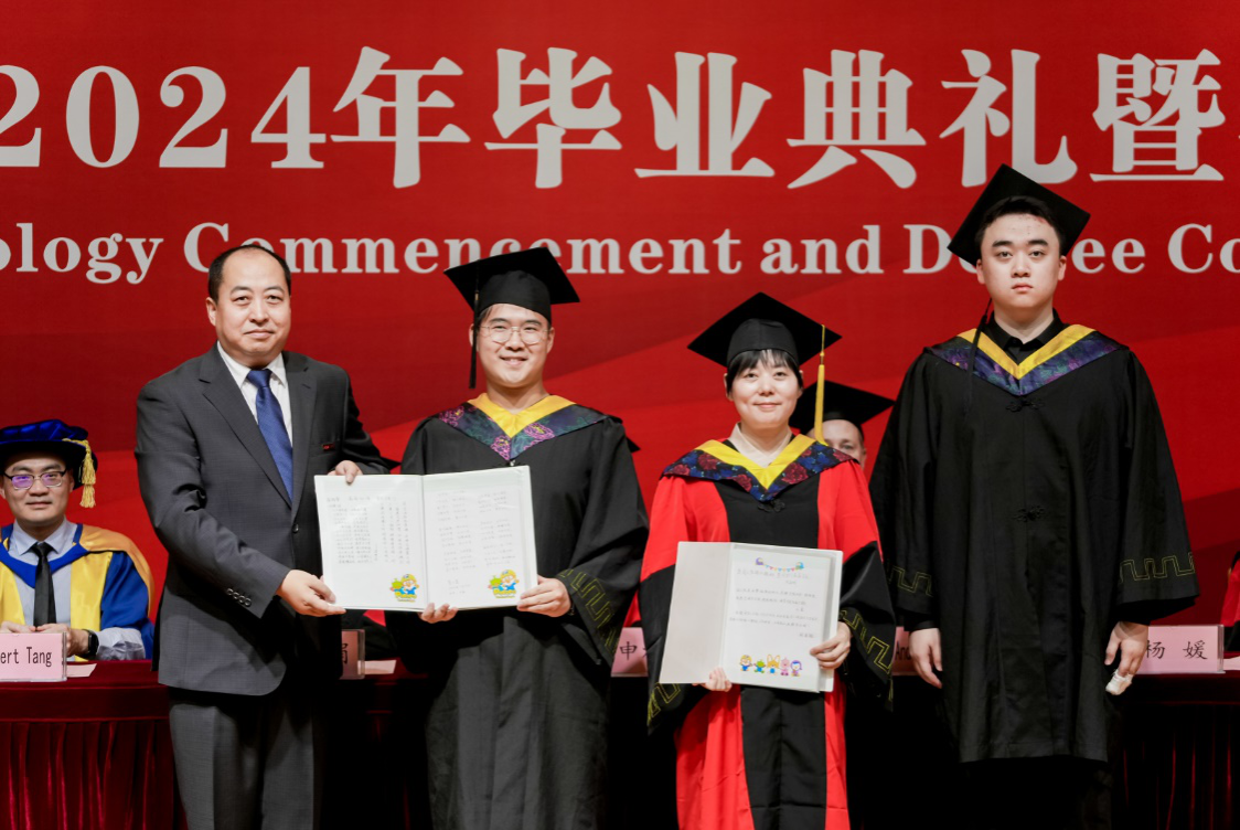 毕业典礼结束后,学院组织进行了学位授予仪式。外方代表Andrew Robert、Albert Tang,申烨华、杨媛、学院各专业负责人共同为毕业生扶正流苏,颁发学位证书并与他们合影留念。在庄重而温馨的氛围中,beat365正版唯一官网必一国际工学院2024年毕业典礼暨学位授予仪式圆满落下帷幕。