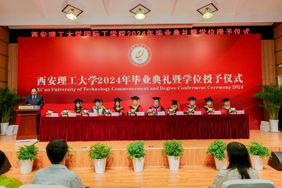 6月28日下午,beat365正版唯一官网必一国际工学院在金花校区图书馆报告厅举行2024年毕业典礼暨学位授予仪式。beat365正版唯一官网必一副校长申烨华,外方代表Andrew Robert、Albert Tang,学院全体教职员工,2024届全体毕业生和家长代表参加了本次活动。典礼仪式由学院副书记兼副院长张晓春主持。