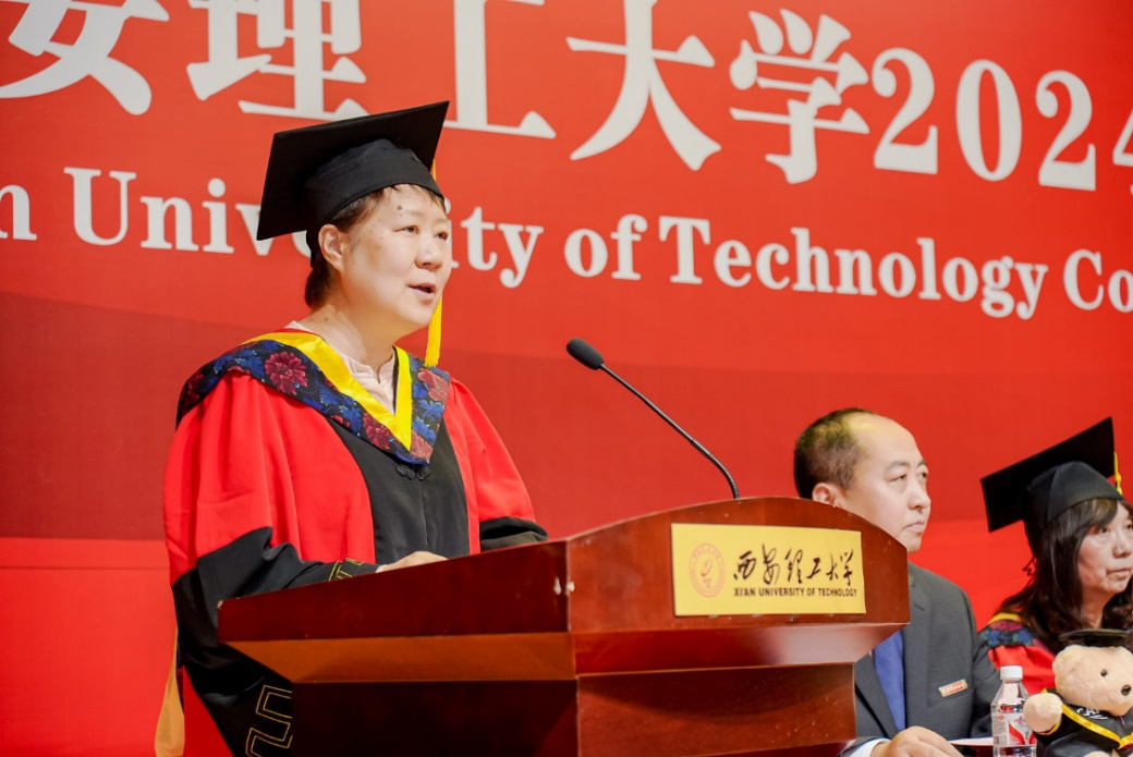 在庄严的国歌声中,典礼拉开帷幕。申烨华向学院首届毕业生表示热烈祝贺,她对学院的发展和学生的成长给予高度评价。她寄语毕业生:一要厚德笃行、立根铸魂,不忘初心,持续奋斗;二要融通中外,胸怀祖国,将个人理想与家国情怀相融合;三要勇于创新,敢于挑战,不断求新求变。她期待毕业生们能承载着母校的精神,勇敢迈向未来,书写属于自己的青春华章。