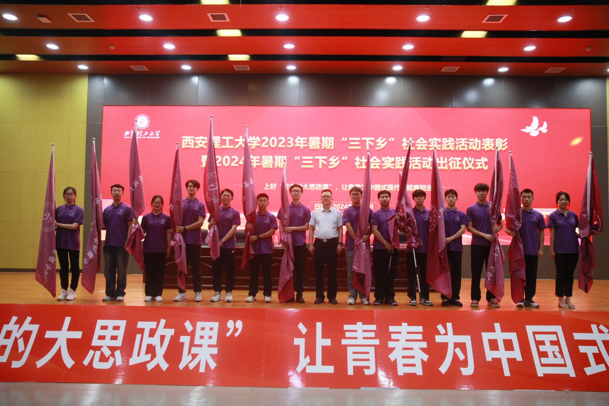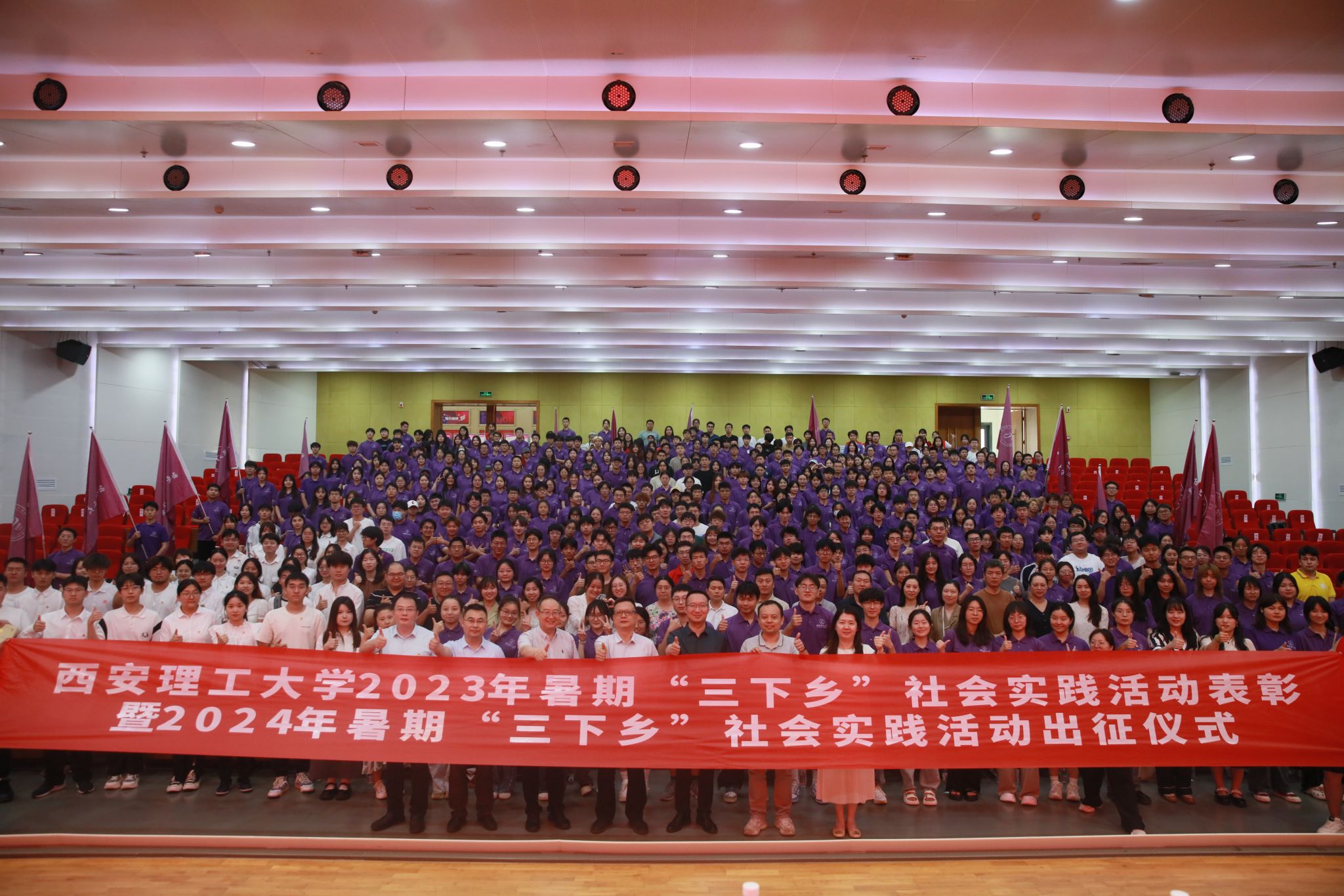 7月4日下午,beat365正版唯一官网必一2023年暑期“三下乡”社会实践活动表彰暨2024年暑期“三下乡”社会实践活动出征仪式在曲江校区图书馆报告厅举行。校党委副书记张存库出席仪式,出征仪式由校团委副书记邹阿龙主持。