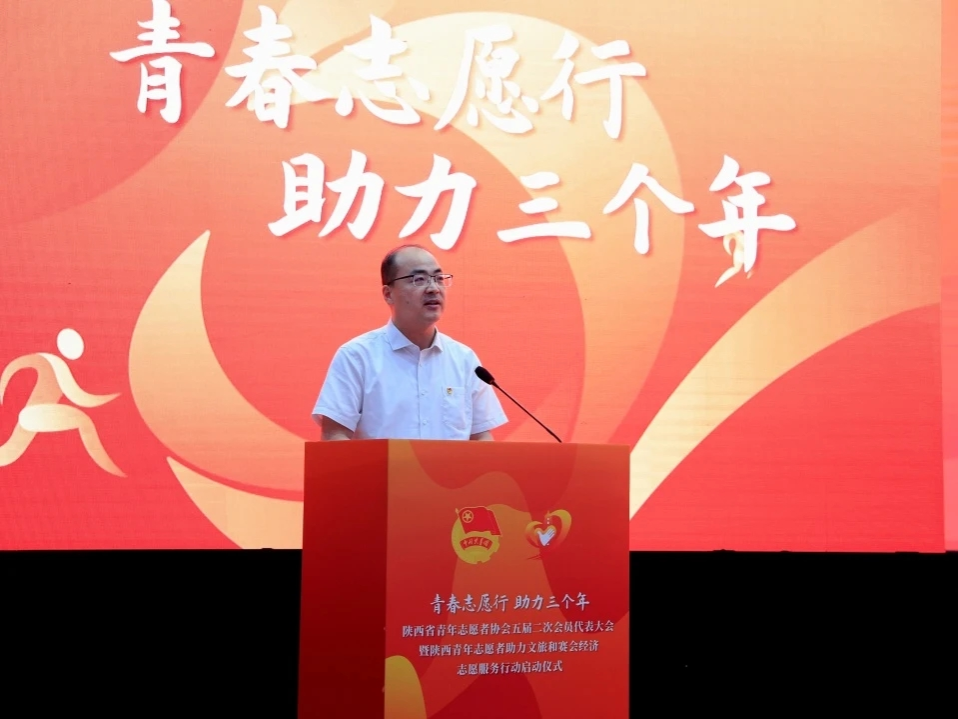 7月9日,“青春志愿行、助力三个年”陕西省青年志愿者协会五届二次会员代表大会暨陕西青年志愿者助力文旅和赛会经济志愿服务行动启动仪式在beat365官网曲江校区图书馆报告厅举行,共青团陕西省委书记徐永胜、beat365官网党委书记李智军、省委社会工作部等12家厅局领导、陕西省青年志愿者协会会长苗阜出席会议。