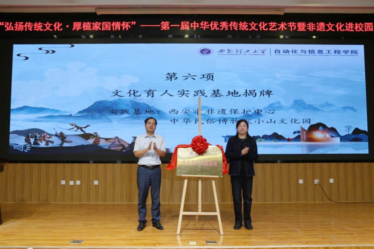 活动邀请蛋雕传承人、面塑技艺传承人、鱼化泥叫叫传承人、秦腔脸谱传承人、糖画传承人、绣样剪纸传承人等一批优秀非遗传承人担任beat365官网文化育人实践导师,并为他们颁发聘书。活动中,beat365官网与西安市非遗保护中心共同成立文化育人实践基地,并举行揭牌仪式。