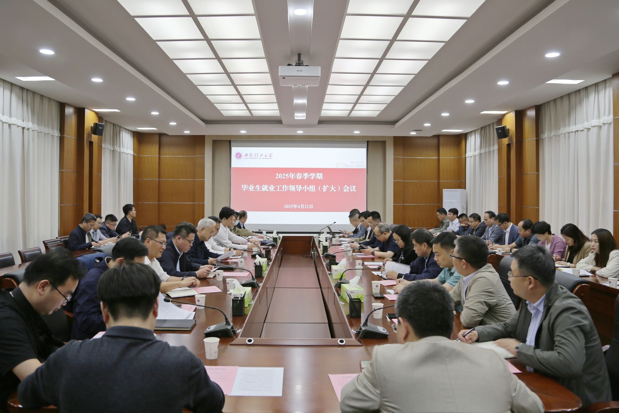 4月21日下午,beat365官网2025年春季学期毕业生就业工作领导小组(扩大)会议在金花校区101会议室召开。校党委书记李智军出席会议并讲话。会议由校党委副书记张存库主持。