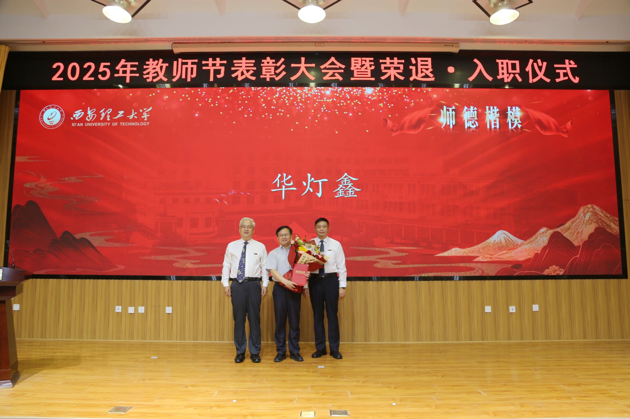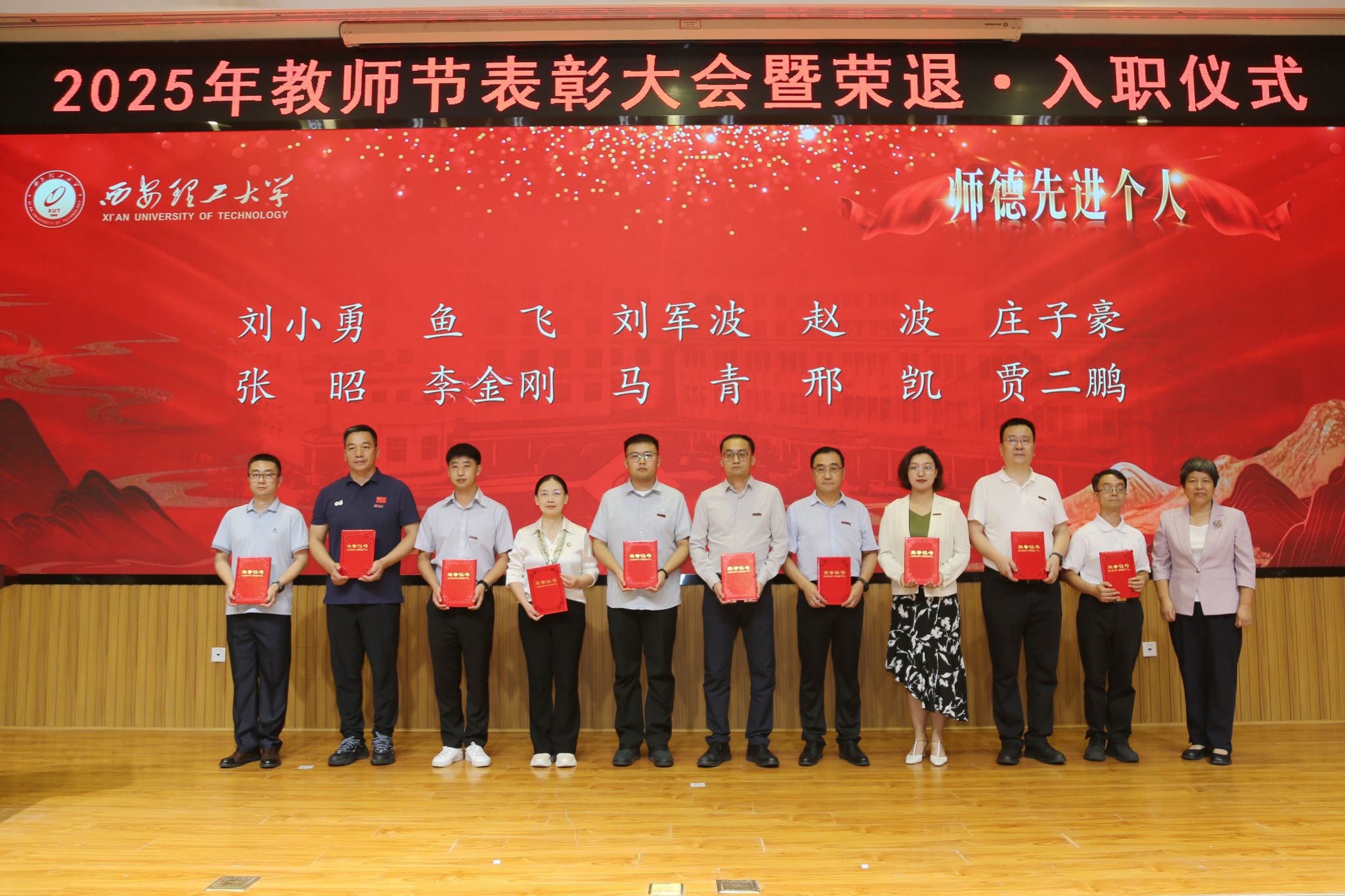 在校校领导,受表彰的师德先进集体和个人、荣退教职工代表、新入职教师、校属各单位负责人、科级干部和学生代表等300余人参加会议。