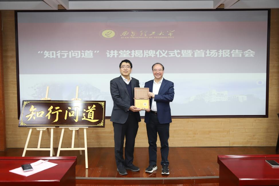 黑新宏在主持中介绍了姚仰平院士的学术成就和重要贡献,并代表学校向姚仰平院士赠送“知行问道”讲堂纪念品。姚仰平院士与黑新宏共同为“知行问道”讲堂揭牌,本科生院院长汤玉斐主持揭牌仪式。
