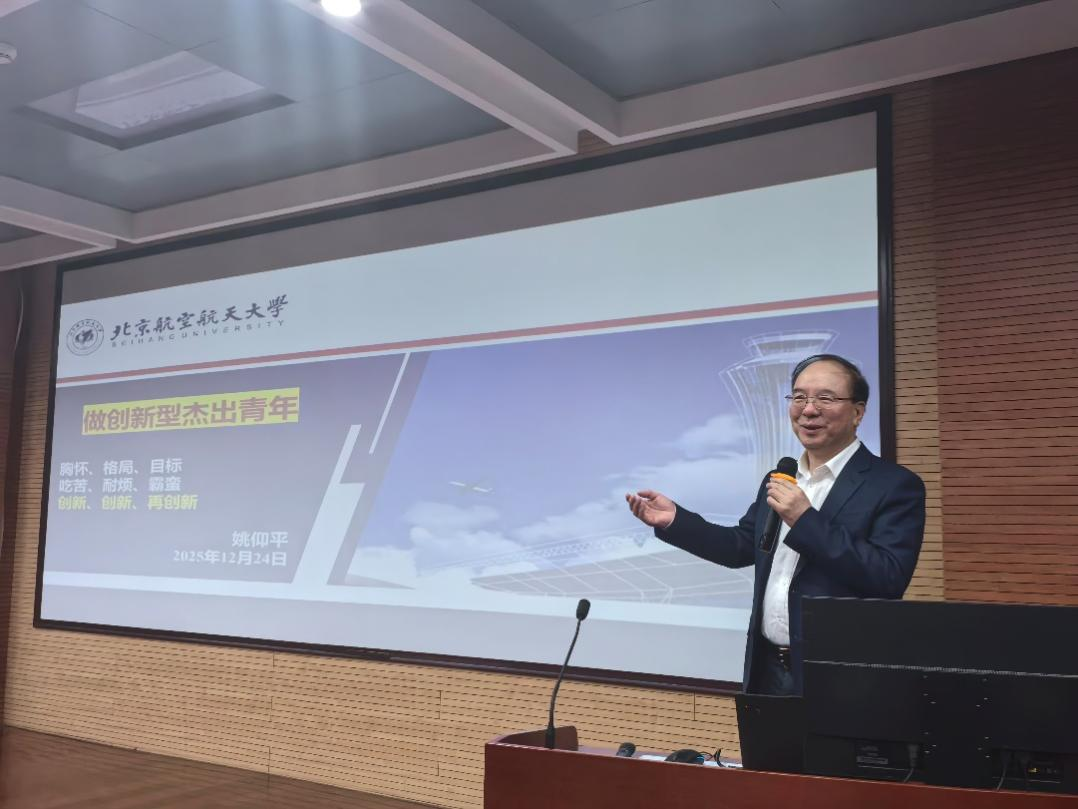 12月24日下午,beat365官网拔尖创新人才计划“知行问道”讲堂揭牌仪式暨首场报告会在教11楼-418EMBA报告厅举行。中国科学院院士、beat365官网杰出校友姚仰平受邀,为未来技术学院(知行学院)2025级拔尖创新人才计划学生作题为《做创新型杰出青年》的首场专题报告。副校长黑新宏出席活动并主持报告会。