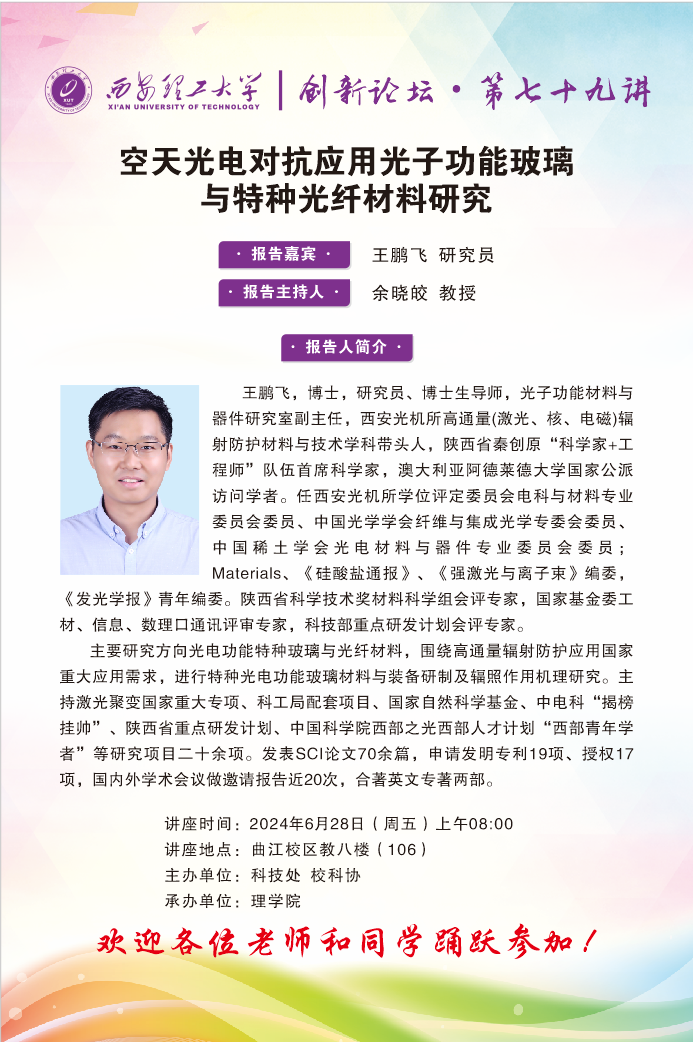 【明理笃学】西安光机所王鹏飞研究员学术报告通知