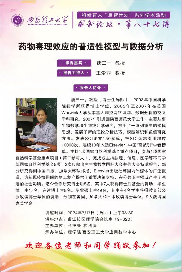 【明理笃学】陕西师范大学唐三一教授学术报告通知