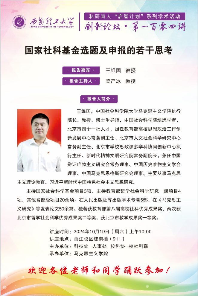 创新论坛第104讲——中国社会科学院大学王维国教授学术报告通知