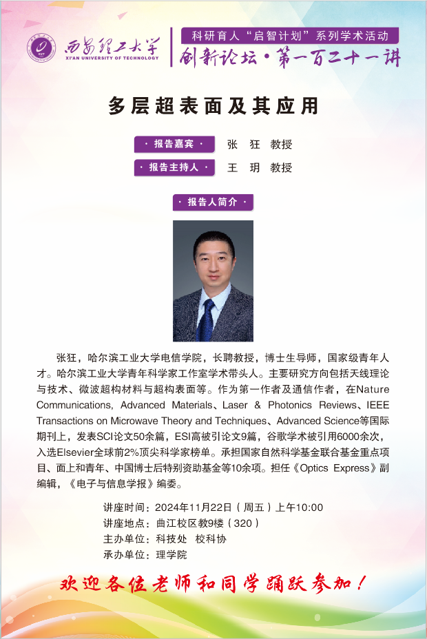 创新论坛第121讲——哈尔滨工业大学张狂教授学术报告通知
