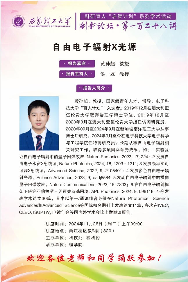 创新论坛第128讲——电子科技大学黄孙超教授学术报告通知