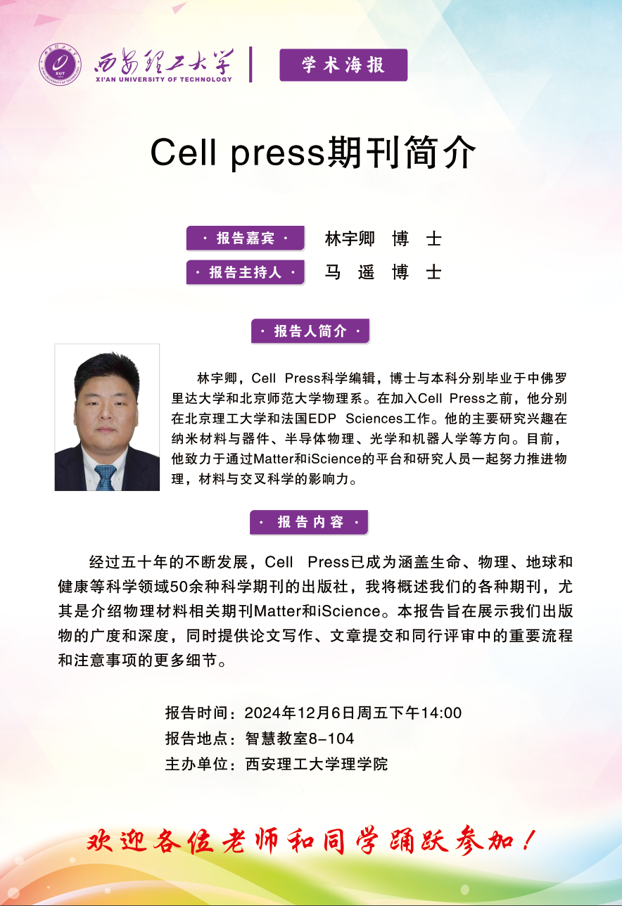 【明理笃学】Cell press期刊编辑林宇卿博士报告通知