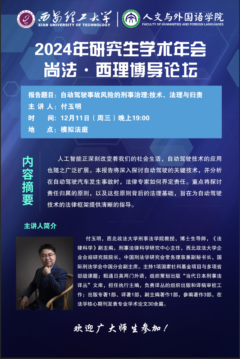 研究生学术年会系列报告--自动驾驶事故风险的刑事治理:技术、法理与归责