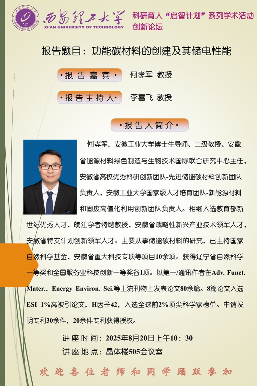 创新论坛第202讲:【淬砺成材】安徽工业大学何孝军教授学术报告通知