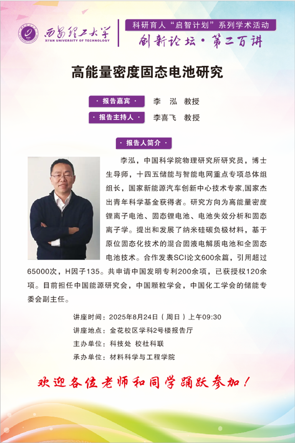 创新论坛第200讲:【淬砺成材】中国科学院物理研究所李泓研究员学术报告通知