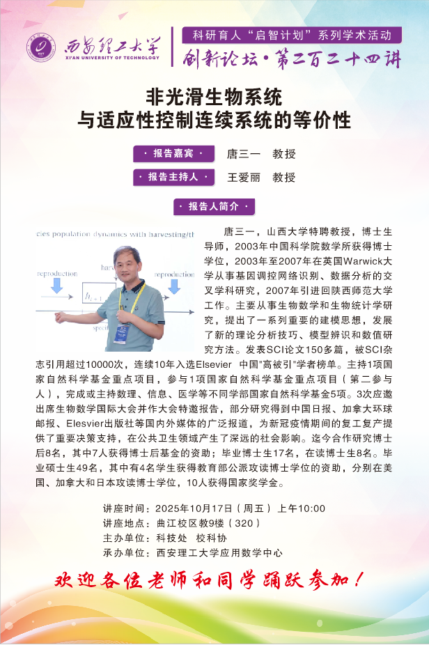 创新论坛第224讲:【明理笃学】山西大学唐三一教授学术报告通知