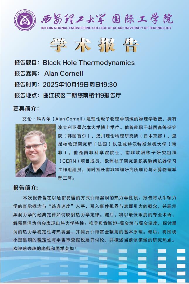 创新论坛第220讲:【汲外融中】约翰内斯堡大学Alan Cornell教授学术报告