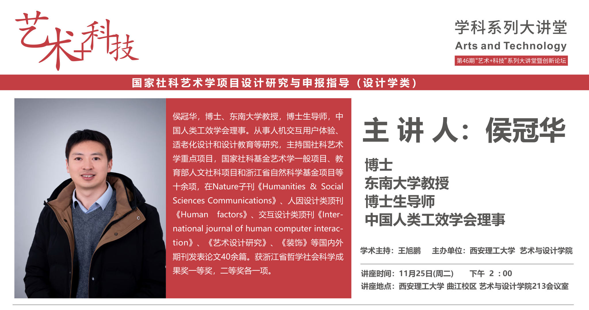创新论坛第249讲:【艺工匠心】东南大学侯冠华教授学术报告通知