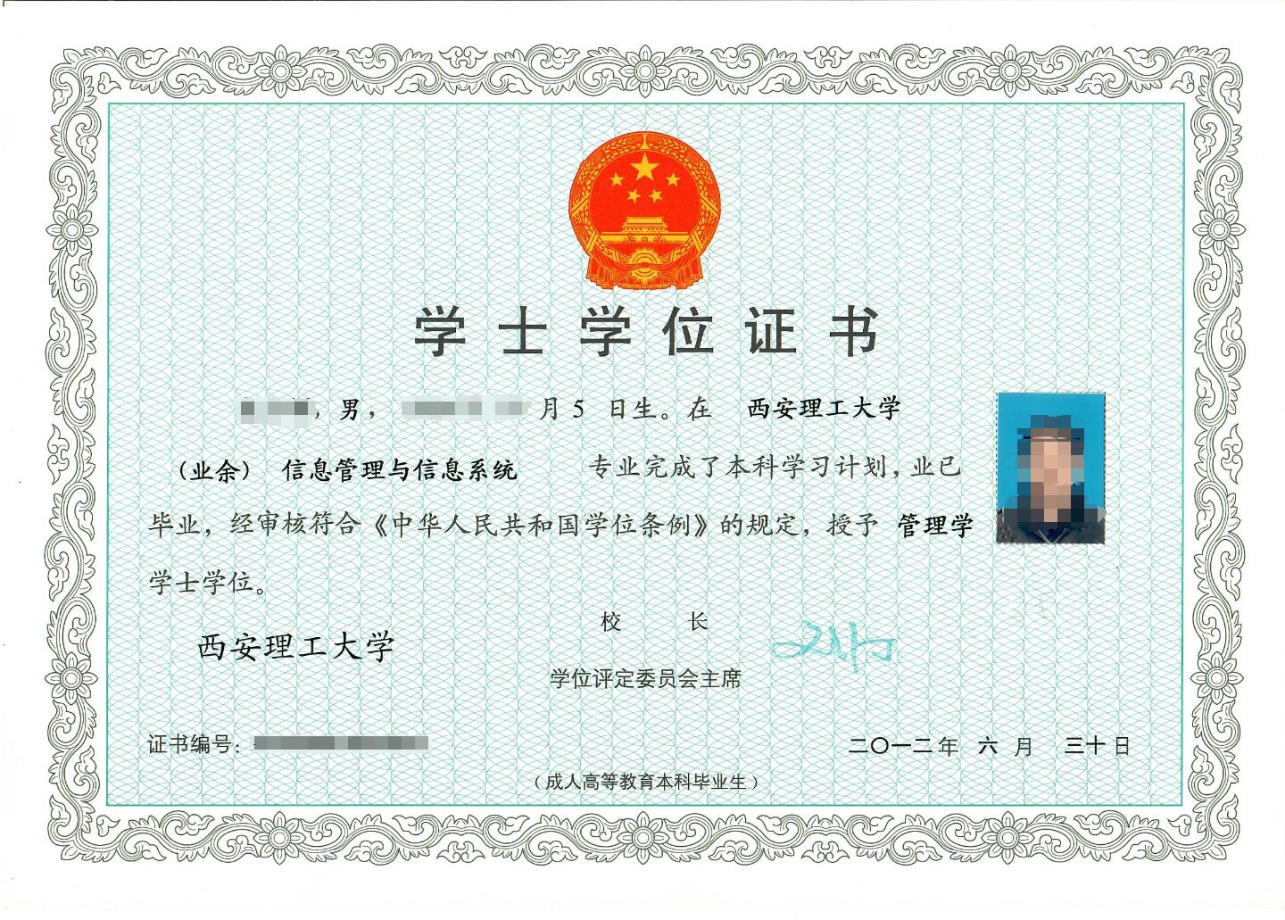 毕业文凭及学位证书样张:(样式及校长落款以学生毕业当年最新样张为准)