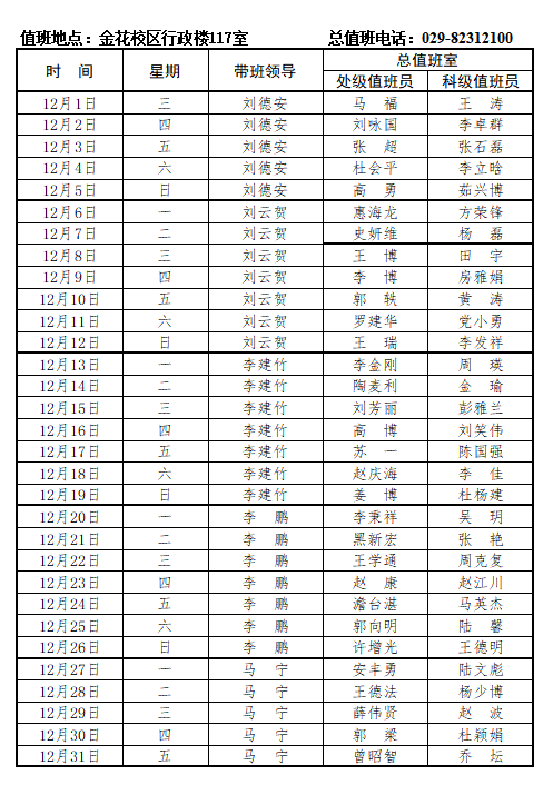 beat365正版唯一官网必一总值班安排表(2021年12月1日-12月31日)
