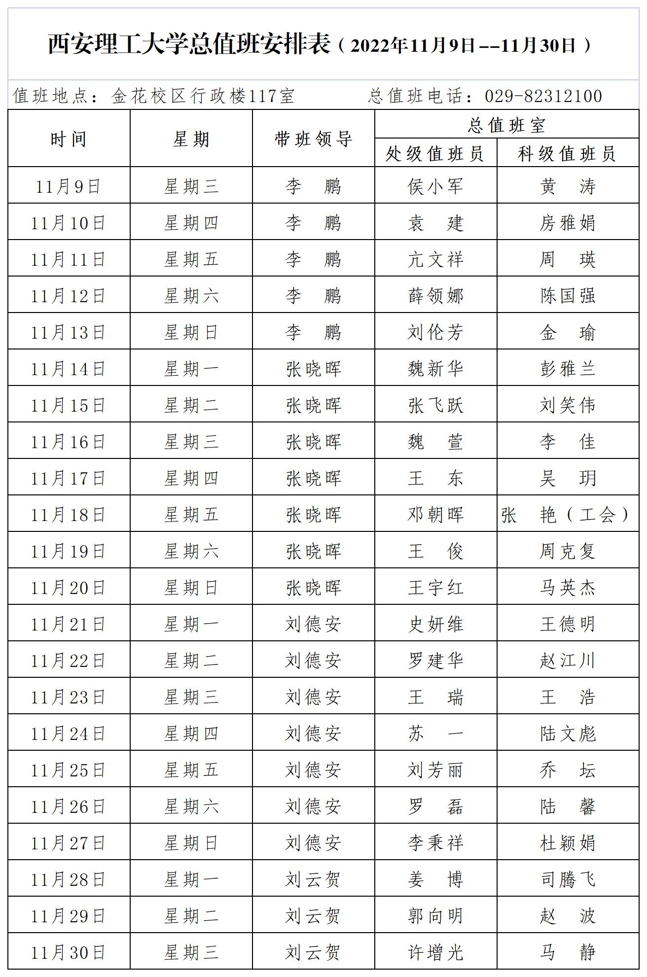 beat365正版唯一官网必一总值班安排表(2022年11月9日--11月30日)