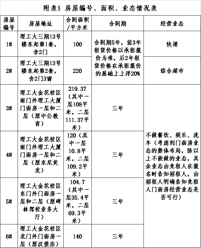 2.招租房屋情况:本次招租共6套房屋,详见下表。