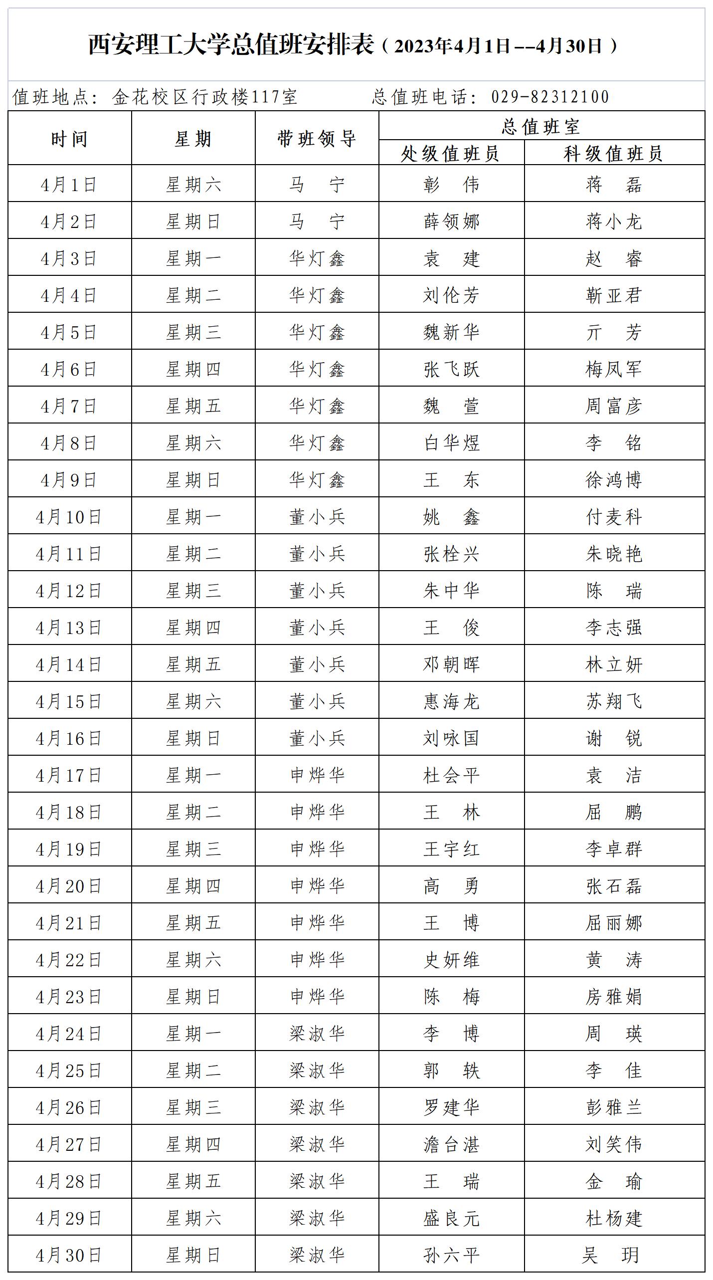 beat365正版唯一官网必一总值班安排表(2023年4月1日--4月30日)