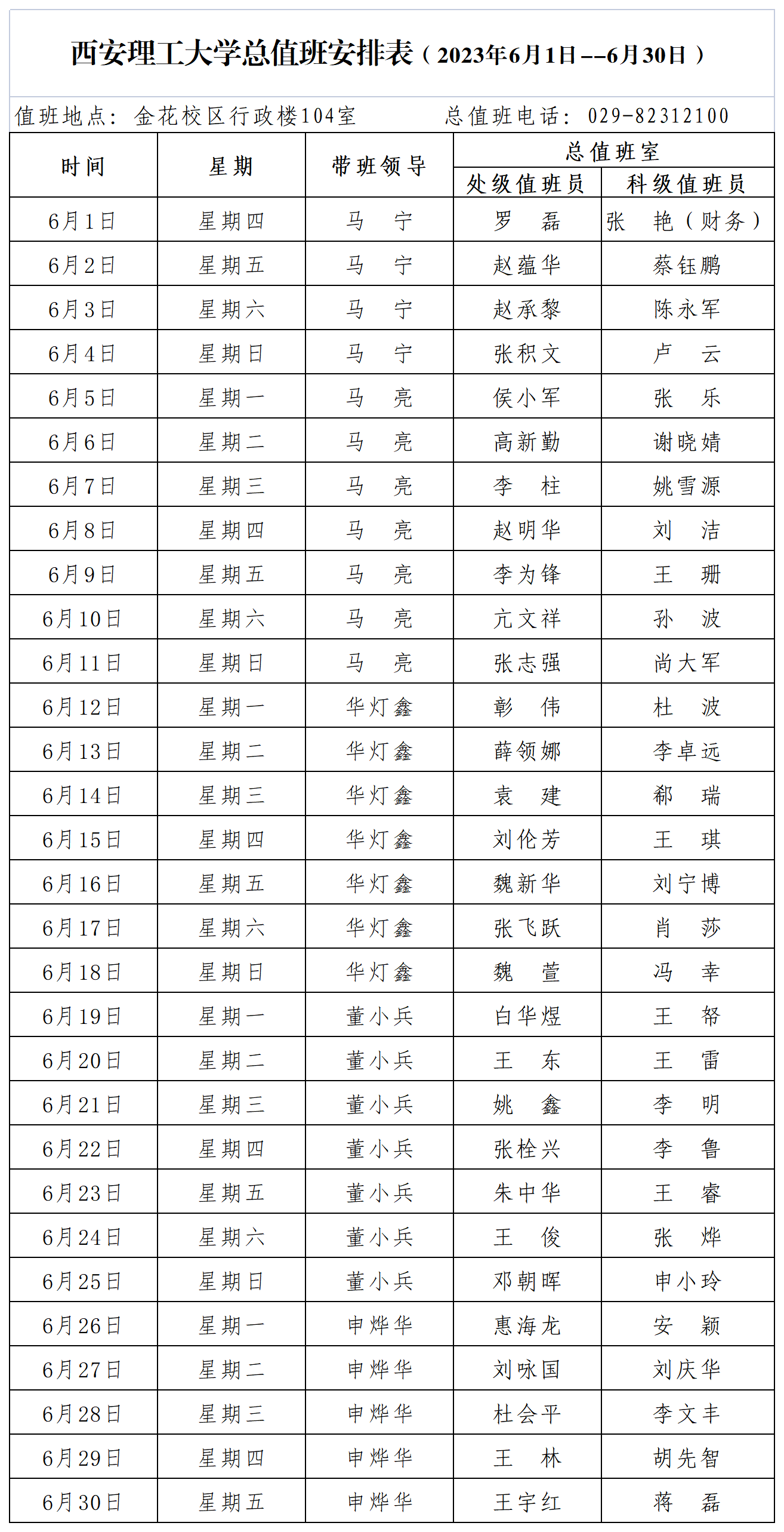 beat365正版唯一官网必一总值班安排表(2023年6月1日--6月30日)