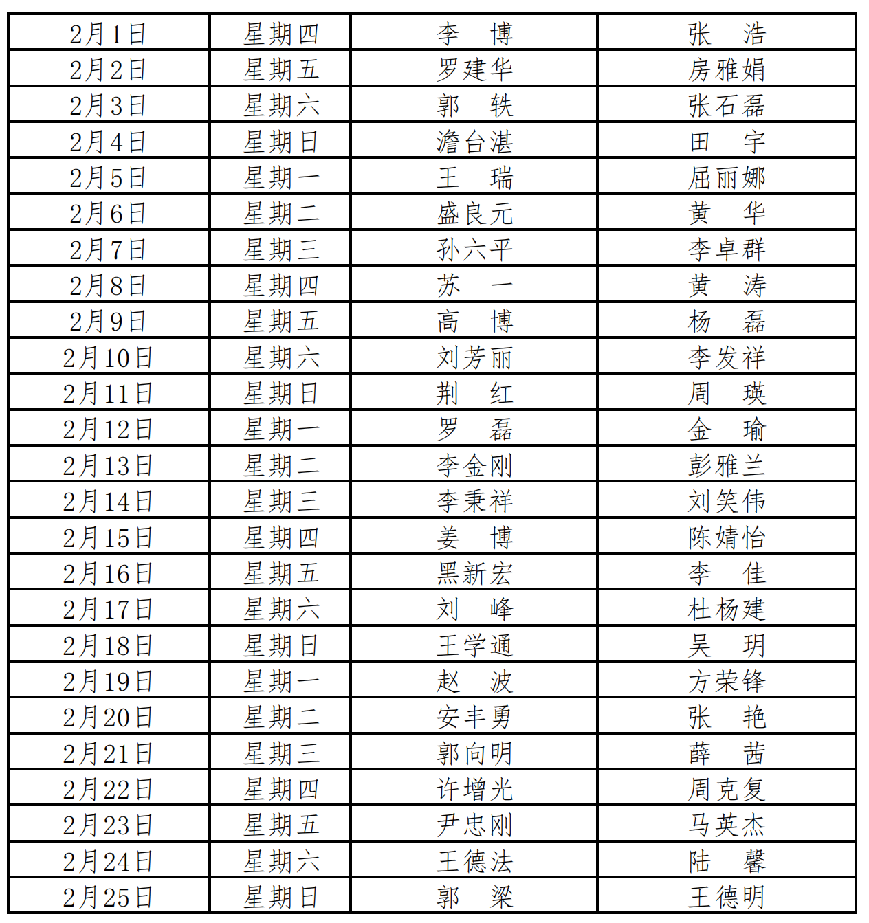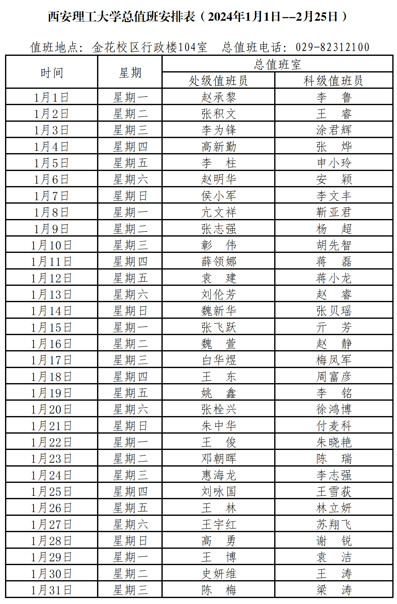 beat365正版唯一官网必一总值班安排表(2024年1月1日--2月25日)