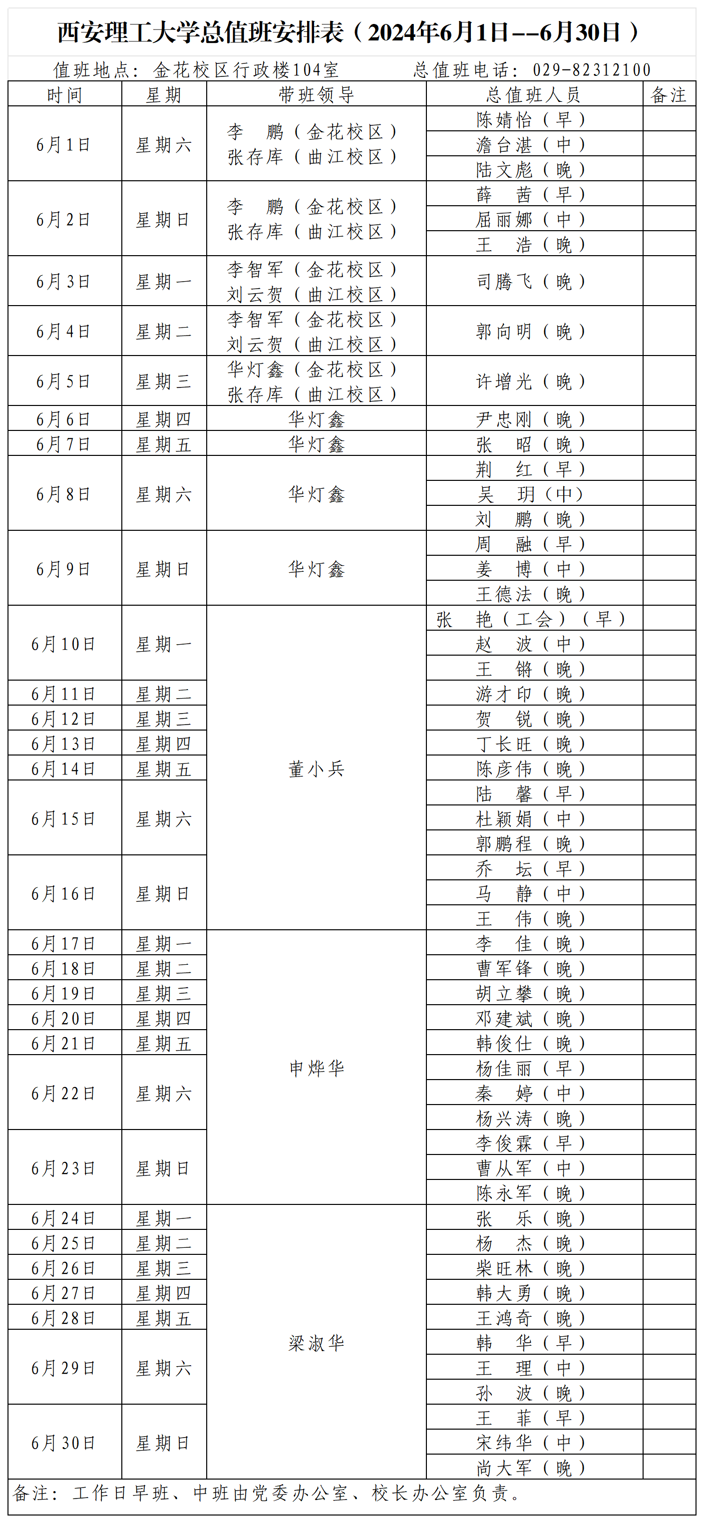 beat365正版唯一官网必一总值班安排表(2024年6月1日--6月30日)