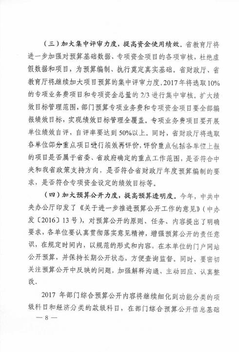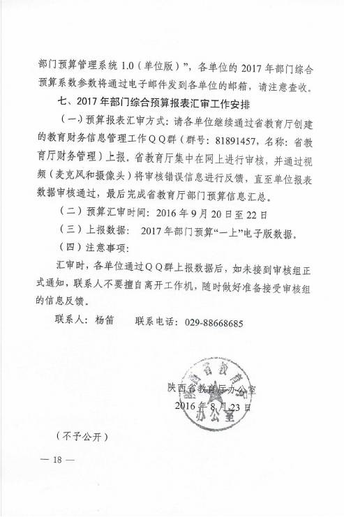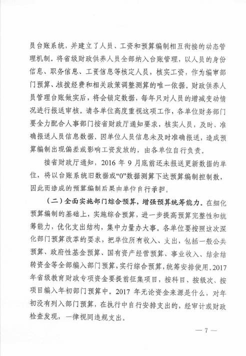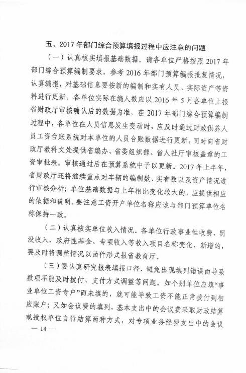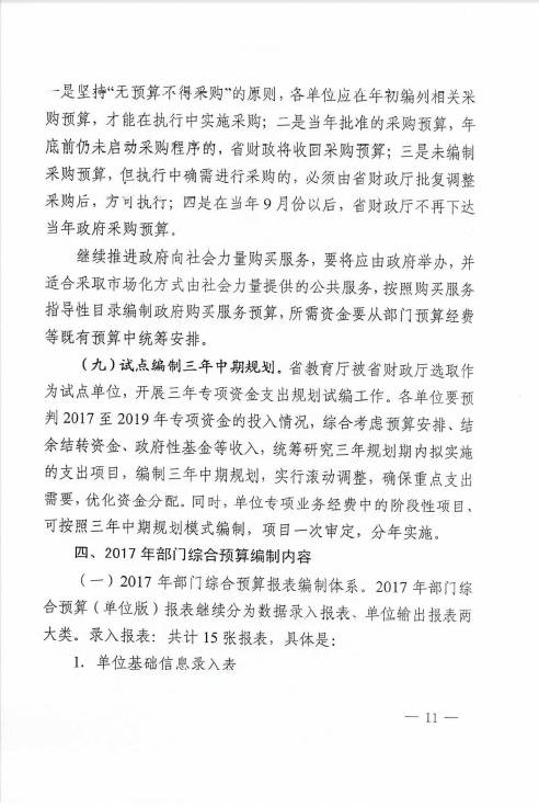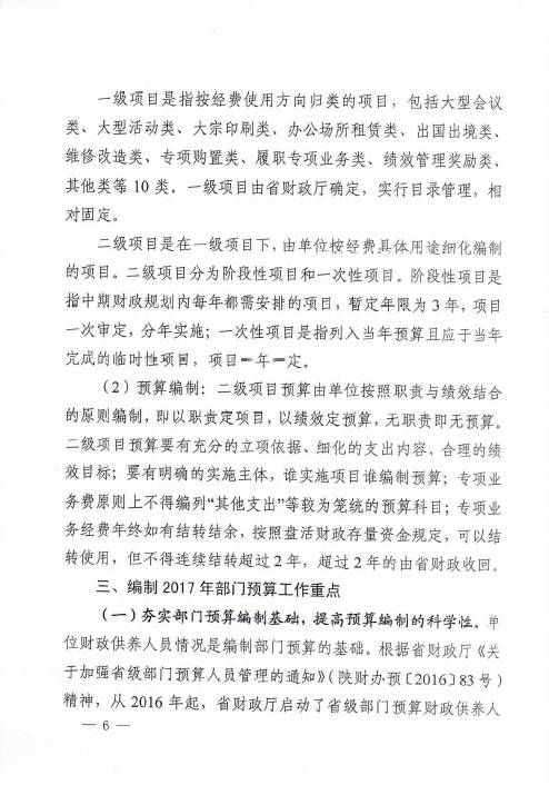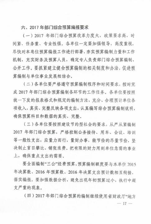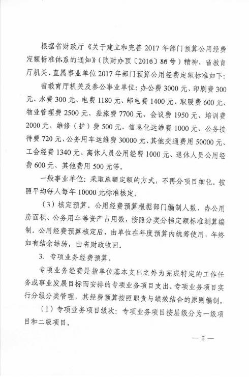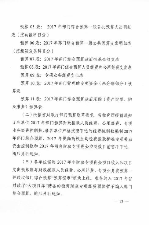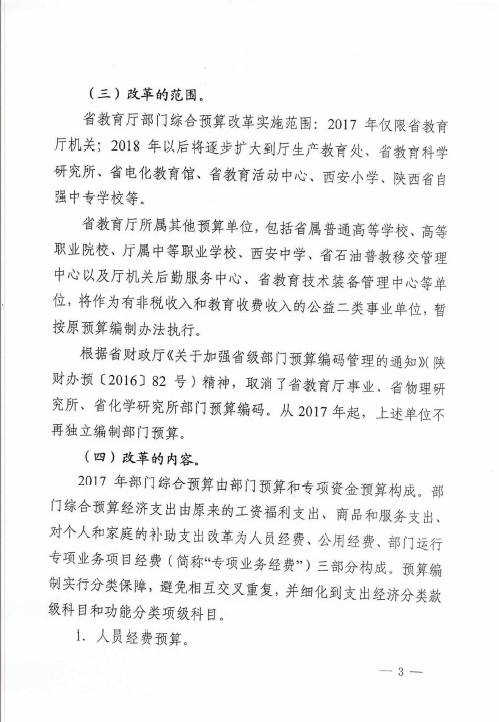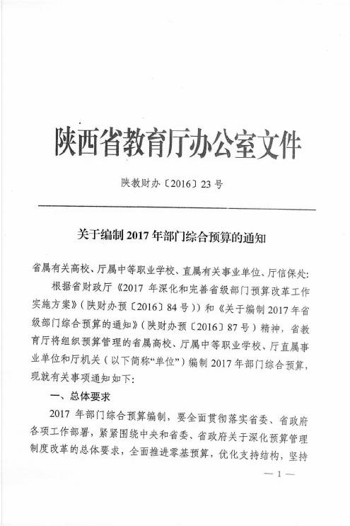 陕西省教育厅关于编制2017年部门综合预算的通知