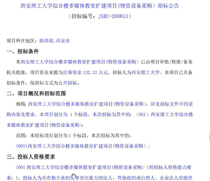 【多媒体教室】beat365正版唯一官网必一综合楼多媒体教室扩建项目(物资设备采购)招标公告