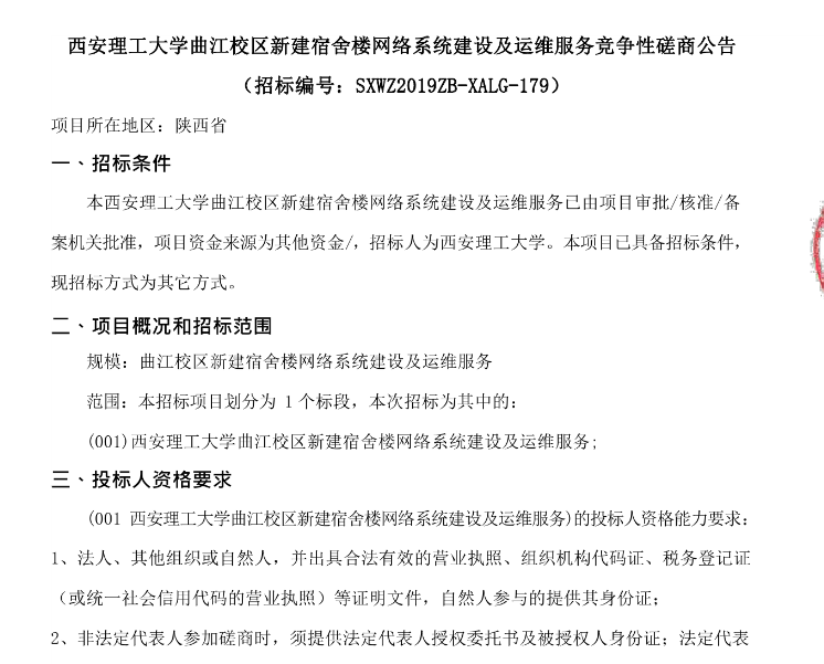 【网络系统 运维服务】beat365正版唯一官网必一曲江校区新建宿舍楼网络系统建设及运维服务竞争性磋商公告