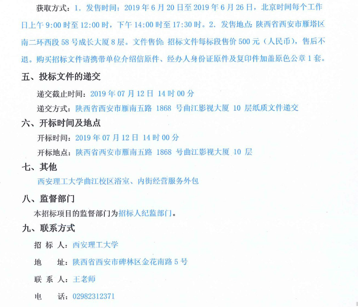 【服务外包】beat365正版唯一官网必一曲江校区浴室、内街经营服务外包项目公开招标公告