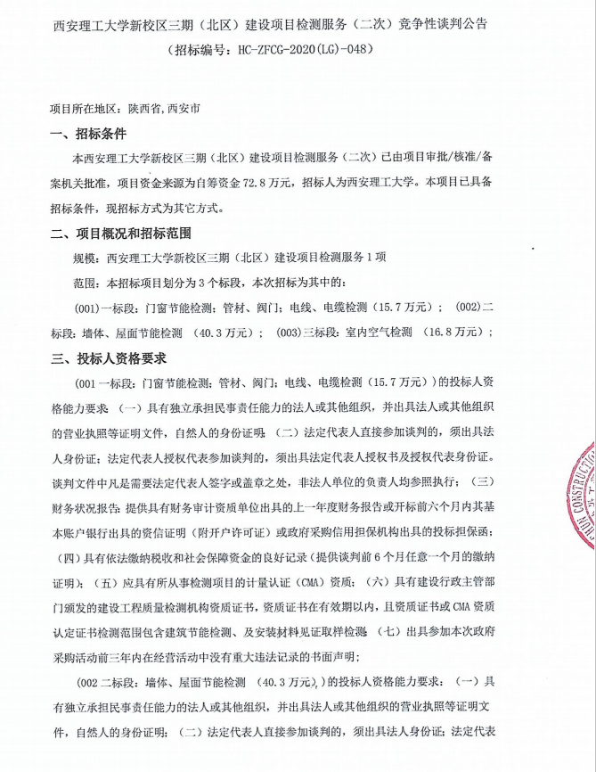 【检测服务二次】beat365正版唯一官网必一新校区三期(北区)建设项目检测服务(二次)竞争性谈判公告